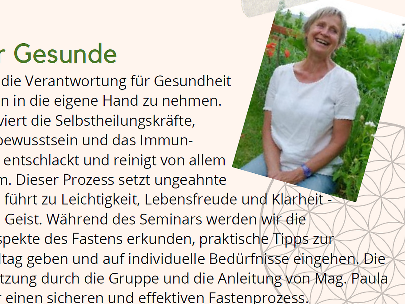 Referentin: Mag. Paula Holzer, zertifizierte Fastenbegleiterin