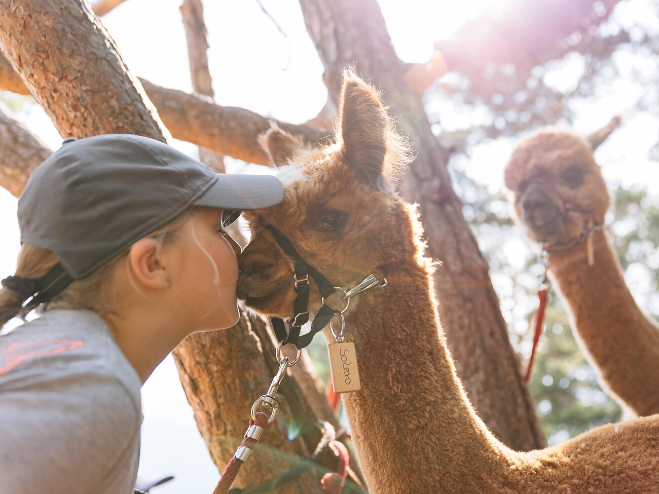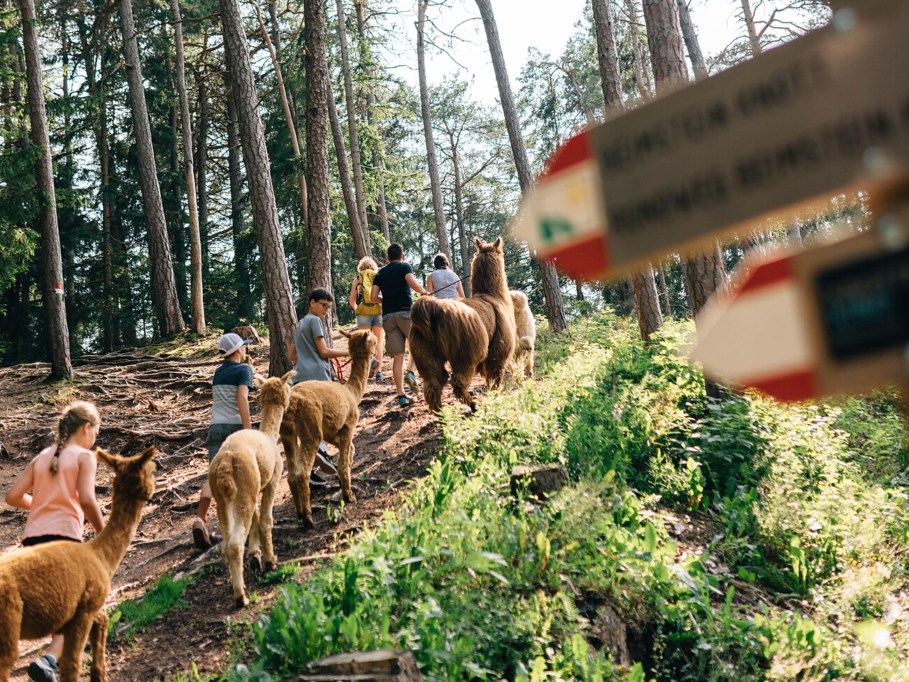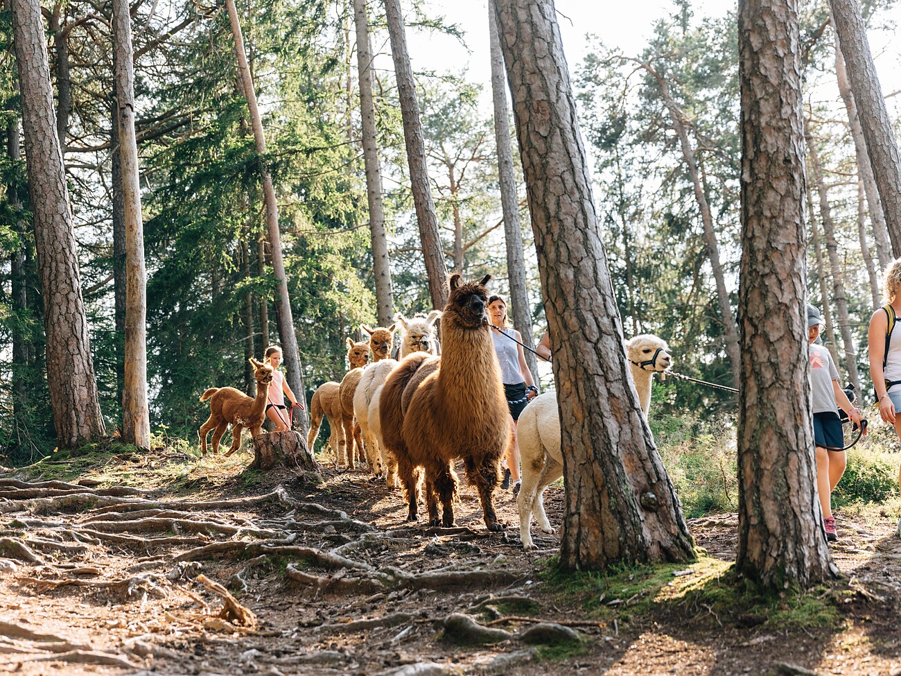 Our fluffy llamas and alpacas are the best companions for hikes and at the same time balm for the soul. We offer hikes with the good-natured, curious and intelligent animals through the nature of Vöran – far away from noise and hectic.