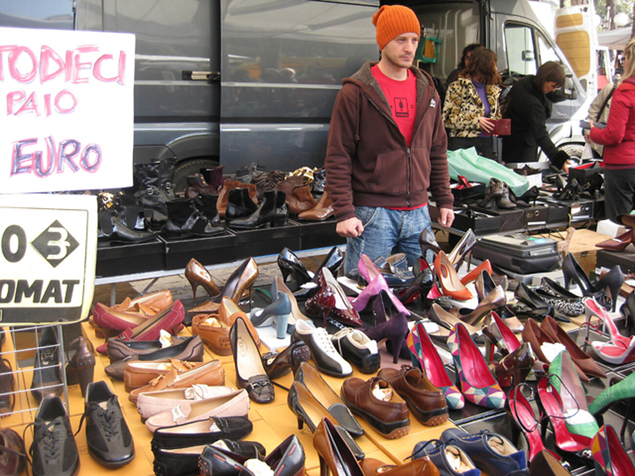 zahlreiche Verkaufsstände bieten Bekleidung, Schuhe, Handtaschen und vieles mehr; Öffnungszeiten: von 8.00 bis 13.00 Uhr
