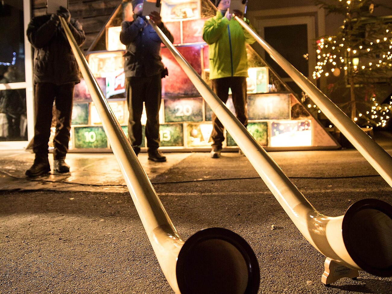 5:30 pm: traditional procession of the illuminated Christmas tree with Nikolaus, angels, and Krampus, accompanied by alphorn players
