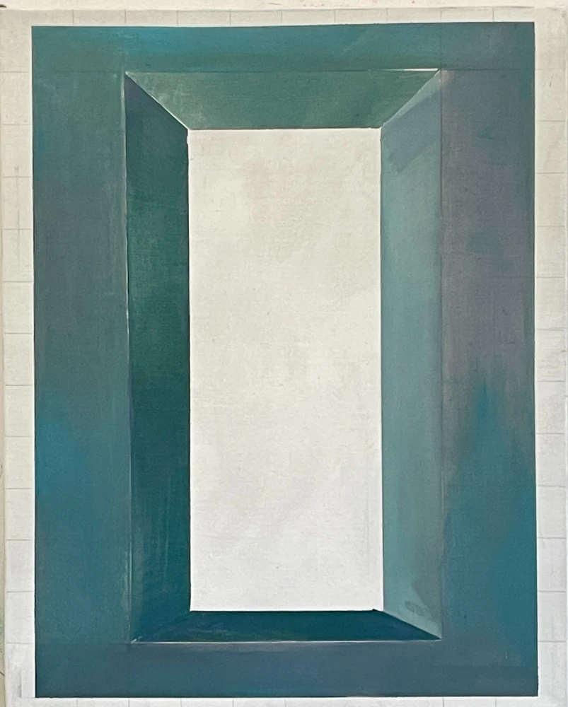 Gallmetzers Arbeiten wie „Turmspringerin", oder „Ausblick“, führen uns an Orte der Unbestimmtheit: Himmel und Wasser verschmelzen, Horizonte lösen sich auf, Menschen befinden sich in einem Zwischenraum, scheinbar losgelöst von Raum und Zeit. Ihre Malerei spielt mit Transparenz, Bewegung und Kontrasten zwischen figürlicher Klarheit und malerischer Auflösung. Dabei stehen oft einzelne Figuren im Zentrum, die mit ihrer Umgebung in einen fragilen Dialog treten – sei es der Sprung ins Ungewisse oder das Verharren in einem Fensterrahmen.