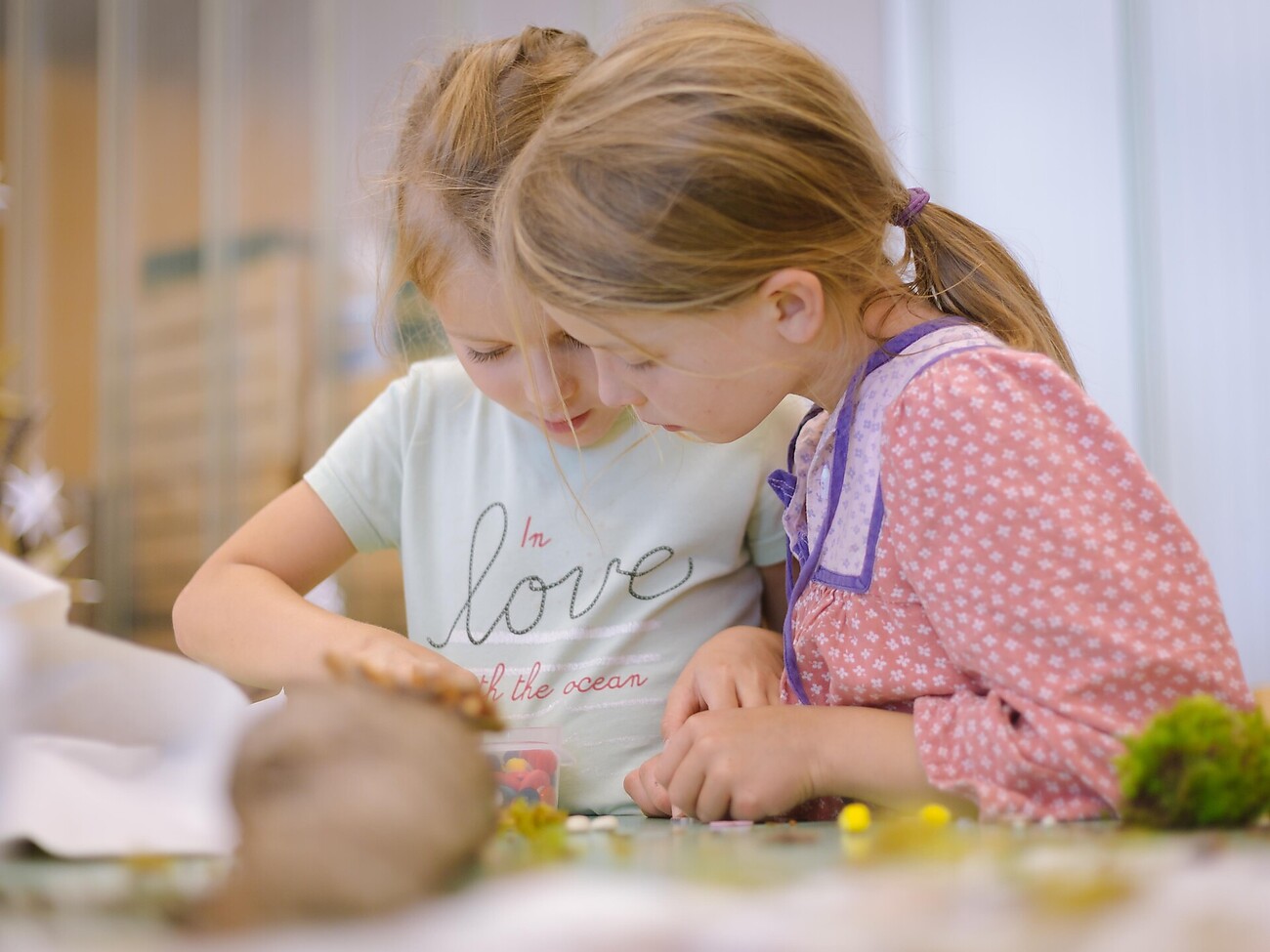 Simple creativity with just pine cones, stones and nuts. At the Wuschlpuschl Nature Workshop, natural objects collected by the kids are transformed into imaginative works of art.