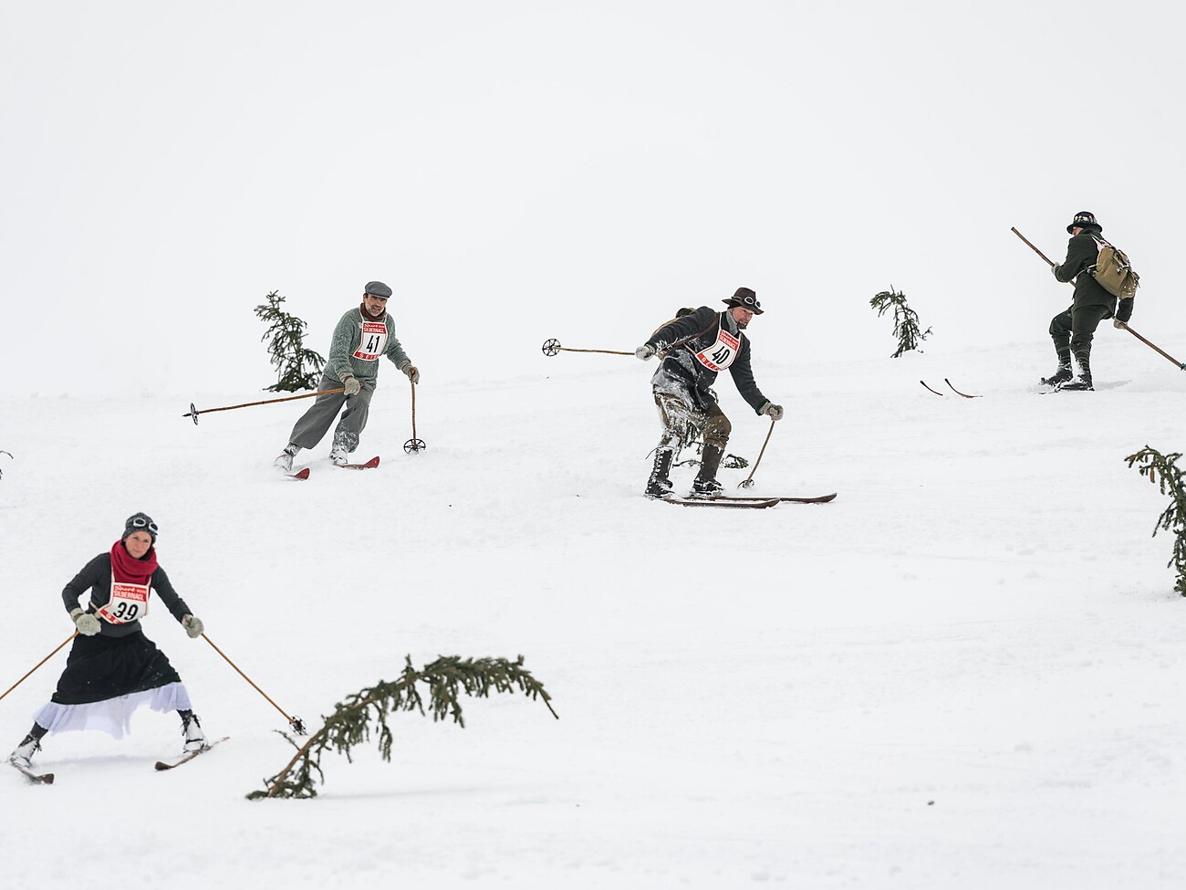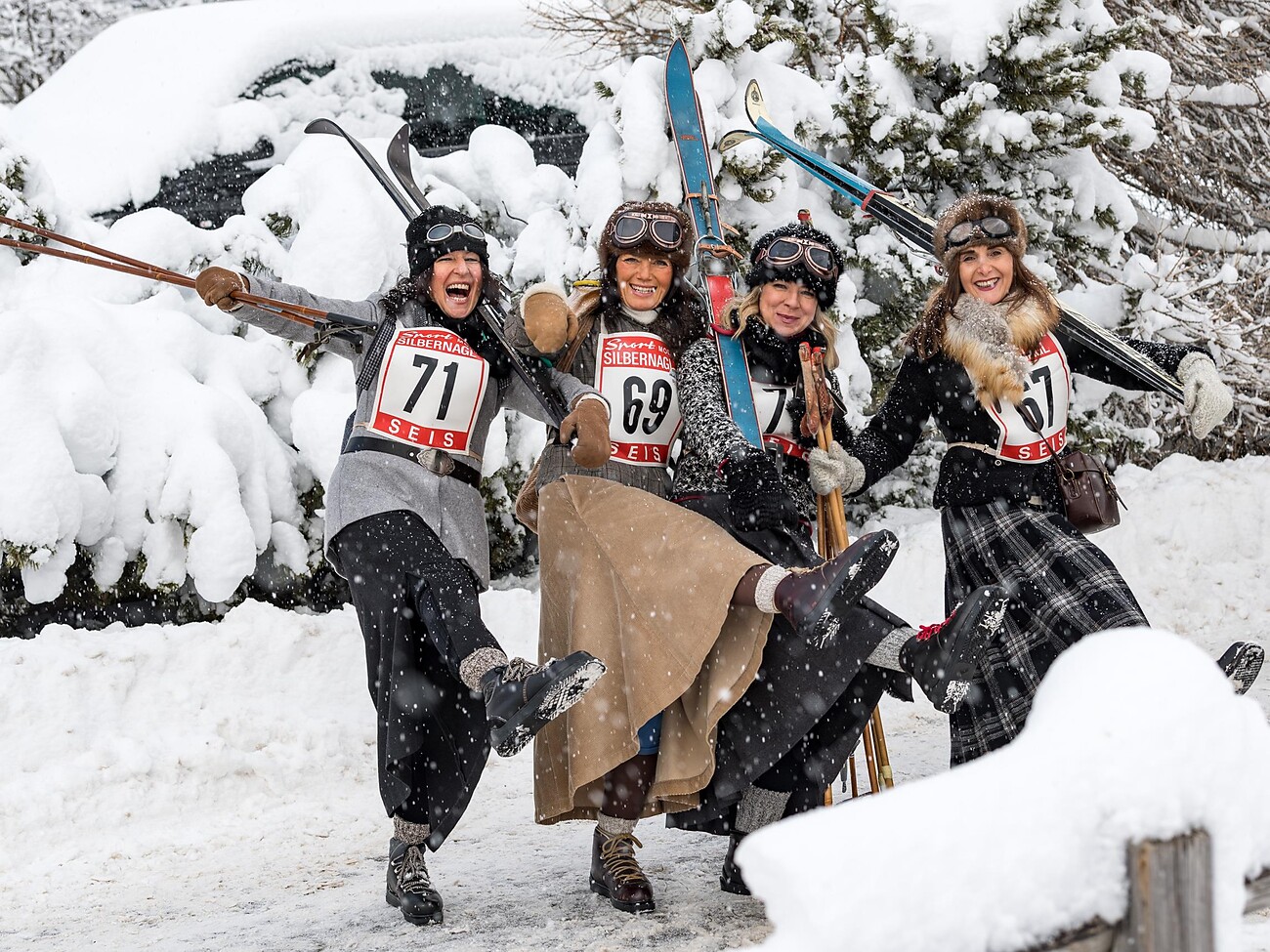 At 11 am the Nostalgic Race begins: Teams will be racing down the slopes in full period costume and gear during this fun, entertaining event. During the lunch break, you will have the chance to meet the nostalgic skiers in the surrounding huts.