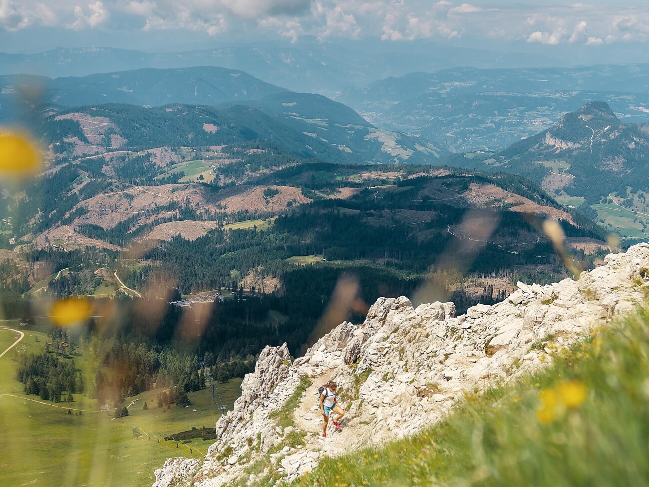 This varied circular hike, guided by Ferdinand Pardeller, leads along well-maintained trails to the idyllic Rotwand Hut. From there, the route continues to the striking Christomannos Monument, with its iconic bronze eagle and a unique view of the Latemar and the Eggental Valley. The return path leads via the welcoming Masaré Hut – perfect for a break with views of the majestic rock formations of the Rosengarten group.