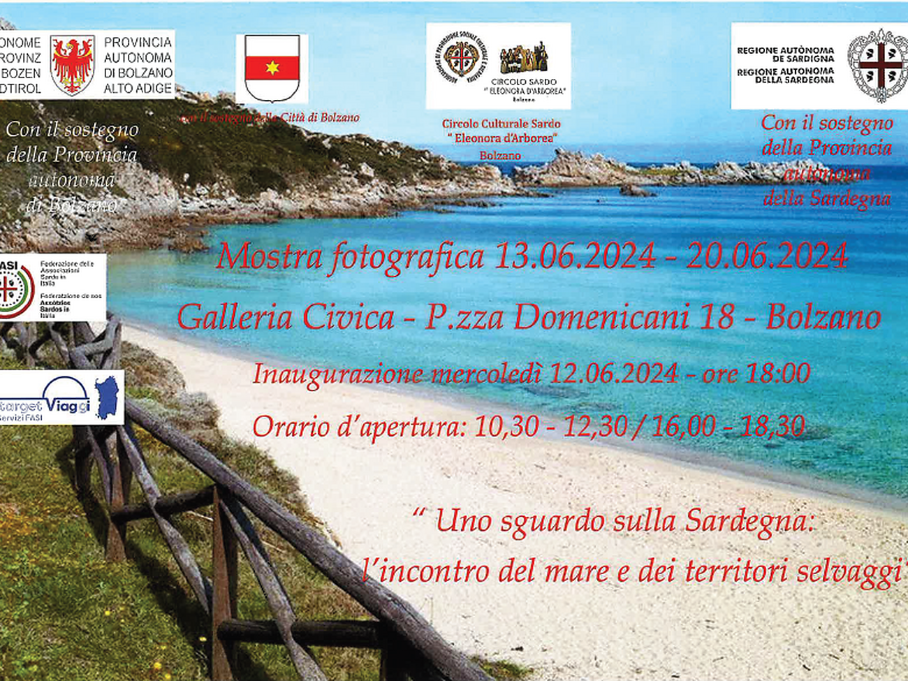 The Sardinian Recreational Cultural Circle “Eleonora d'Arborea APS,” with the support of the City of Bolzano, has organized a Photographic Exhibition on Sardinia to take place at the Civic Gallery. Sardinia in the heart of the Mediterranean, a famous personage called life in Sardinia the best a man could wish for, comparing the island to Paradise on Earth.