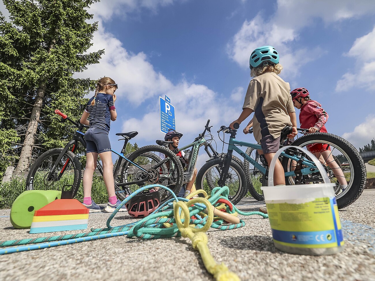 Together with the children, we set up various bike courses that playfully develop different skills. The kids can learn or improve their balance, coordination, and biking technique. Whether it’s small obstacles, slalom courses, or skill exercises, each course is designed to increase the fun of cycling while building confidence in handling the bike. In this way, children combine movement, adventure, and learning opportunities in a varied and motivating environment.