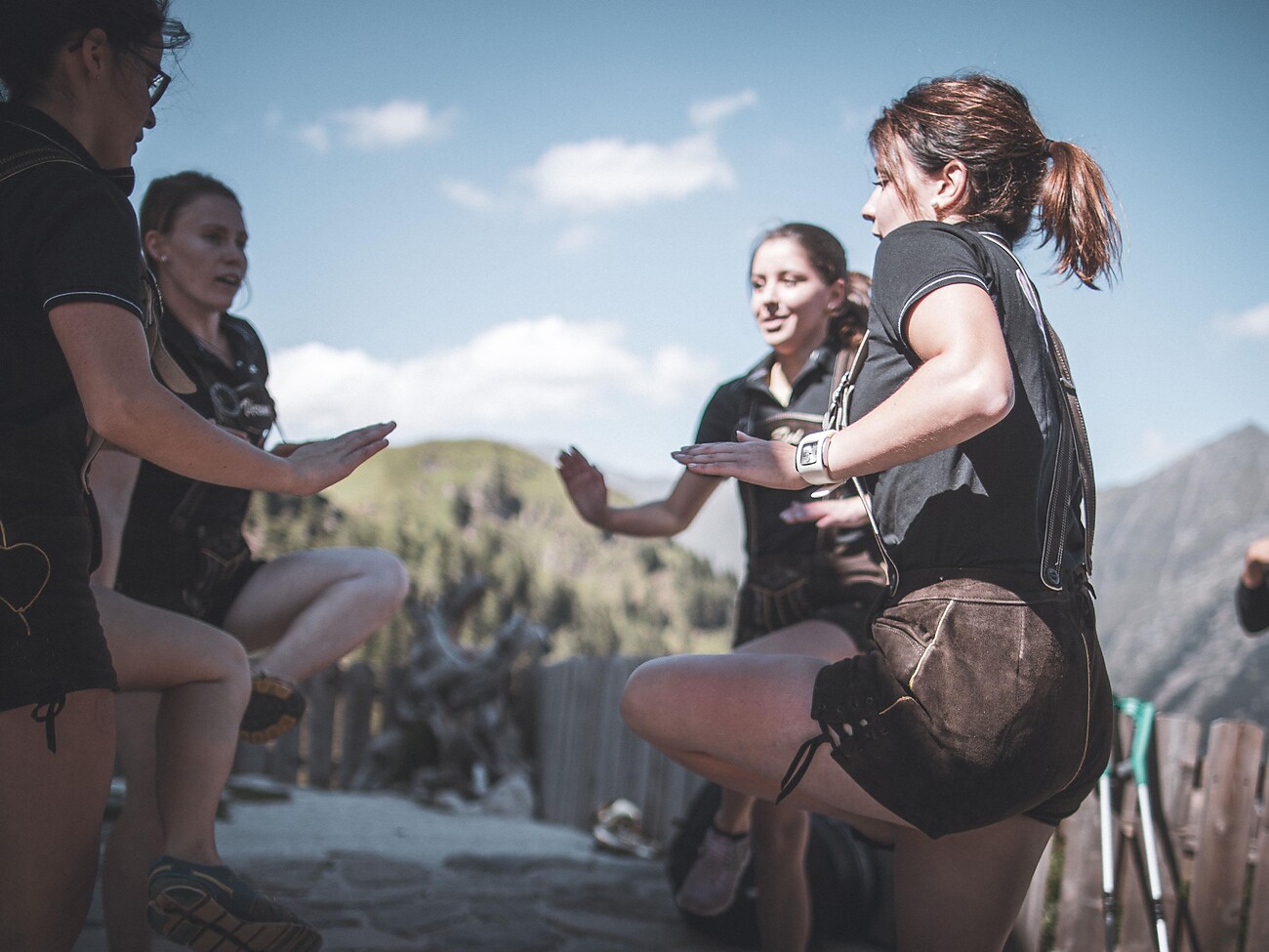 Traditional Schuhplattler from all over South Tyrol create a great atmosphere at the various mountain huts. The focus here is on fun, entertainment and the love of tradition. Clapping, jumping and the traditional yell of joy are part of every typical Schuhplattler dance and tempt many to join in.