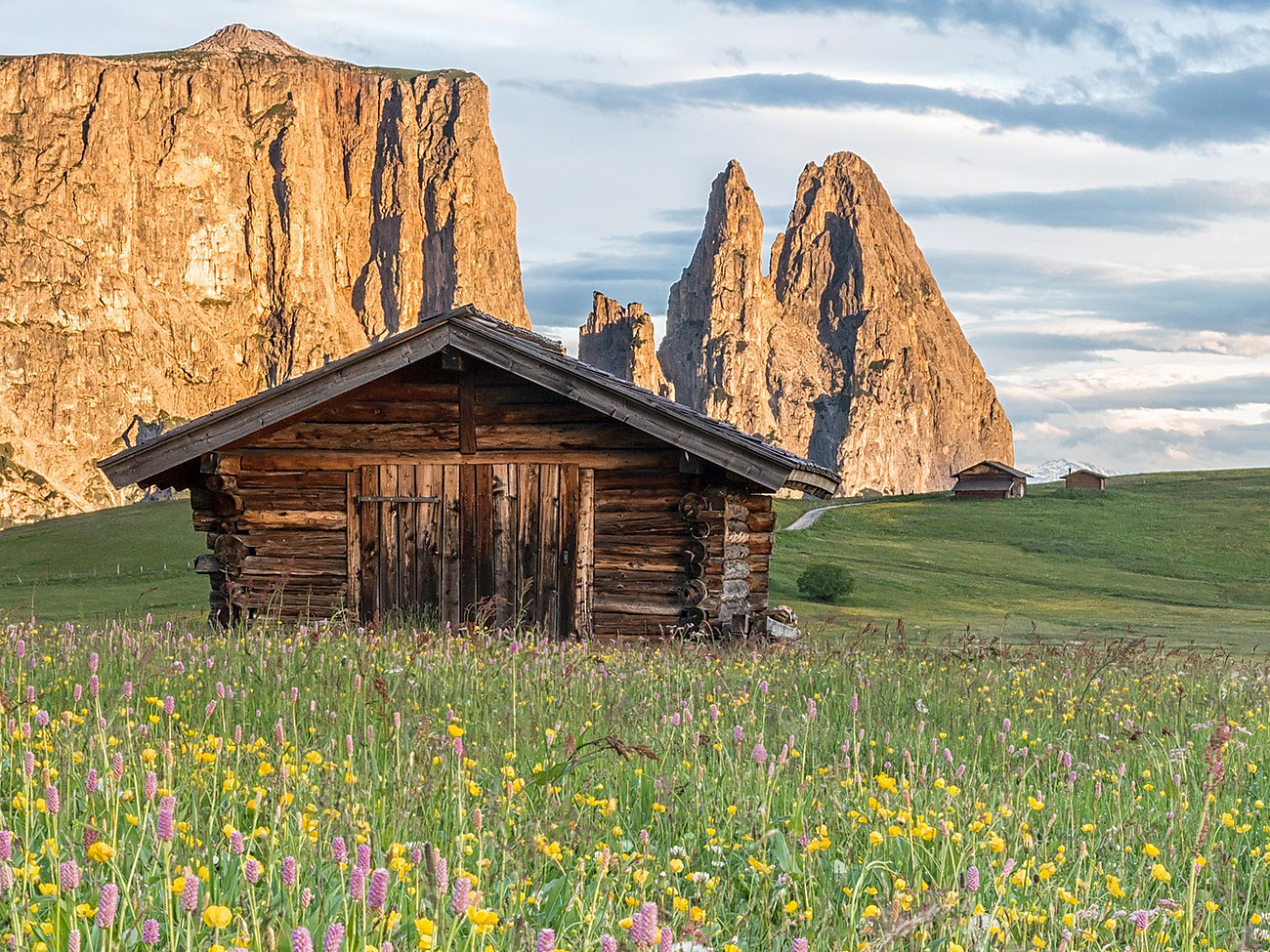 This walk is an absolute must for all those who have fallen in love with the unique world of flowers on Seiser Alm. Countless spring crocuses transform the Alm into a shimmering sea of lilac. In this region of flowers, delicate anemones mingle with snowdrops, primulas and the golden blossom of rock rose, the sky-blue gentian and the rose-pink striped daphne. And then the meadow grasses sprout up, interspersed with wild orchids, fringed pink, brunella, arnica, lilies, globeflowers and, and, and… A paradise of flowers unlikely to be found anywhere else on Earth.