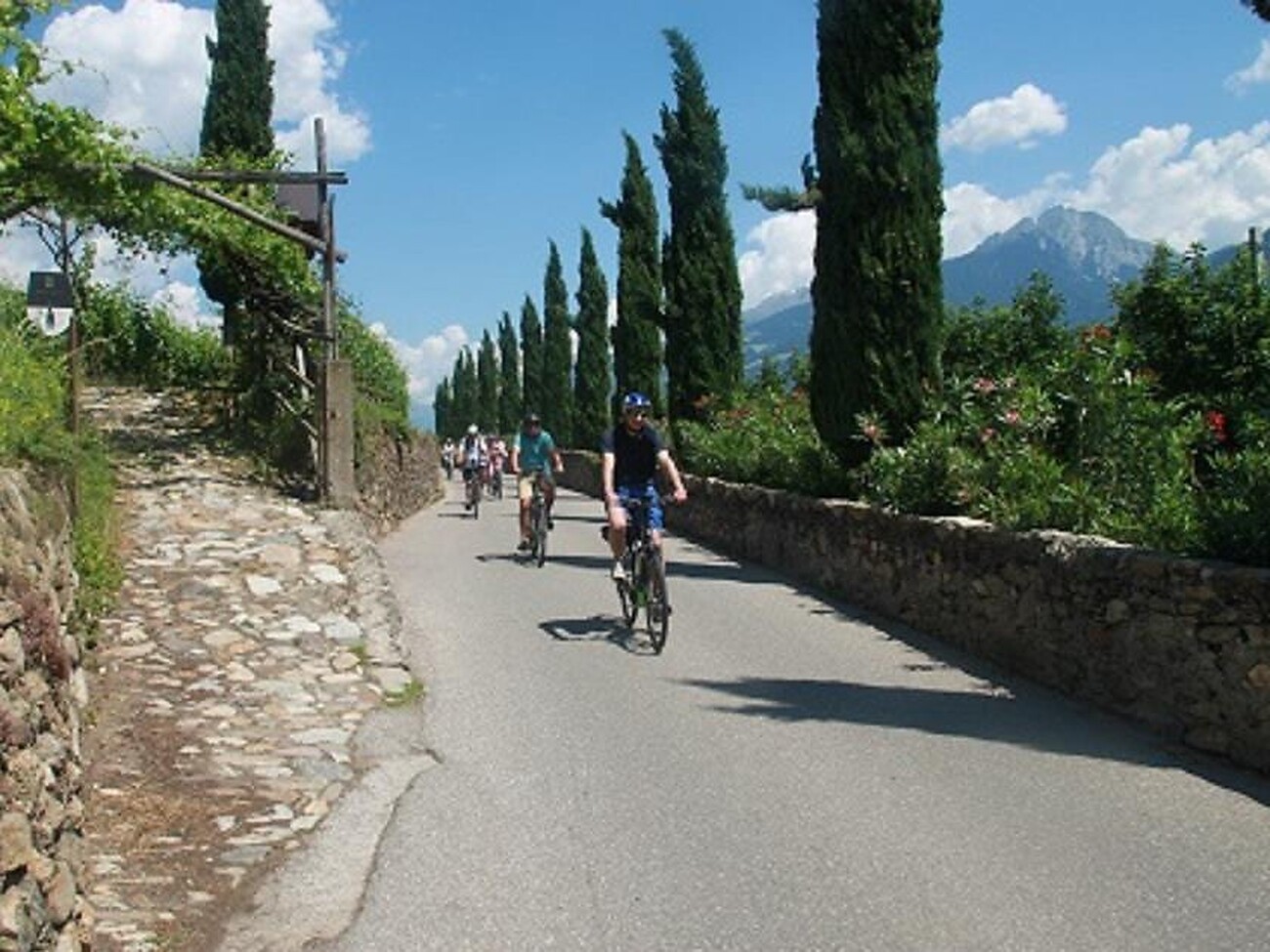 Discover rustic farms, great viewpoints, undiscovered corners, interesting people, their specialties, and stories. Guided day trip by e-bike around Merano, cycling over 35 km on romantic paths.