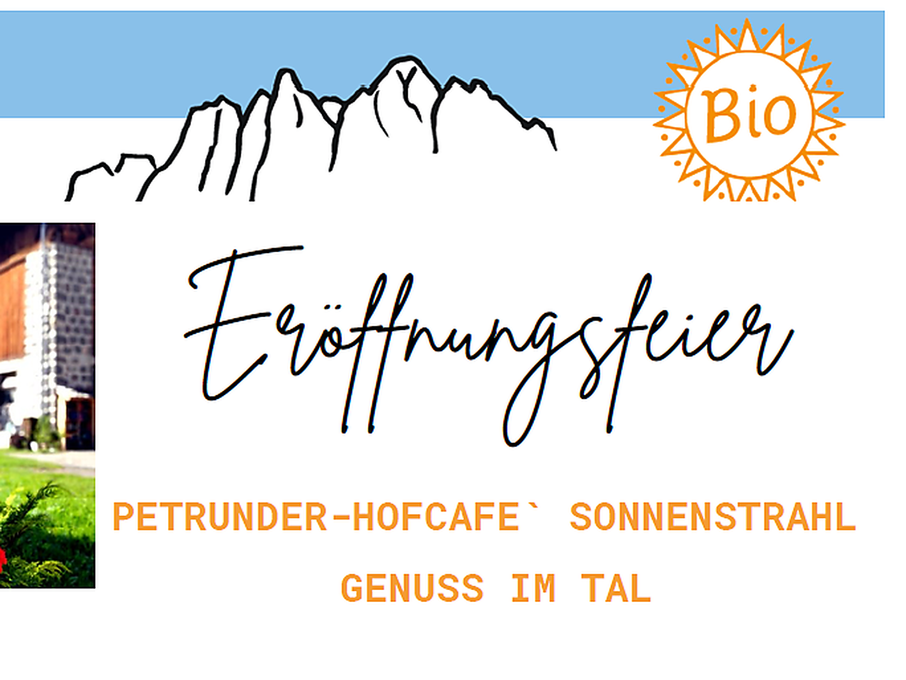 Bio-Petrunderhof warmly invites you to the opening celebration of the Hofcafé Sonnenstrahl! Come to Bio-Petrunderhof in St. Valentin and enjoy a special day filled with great atmosphere and delicious treats.