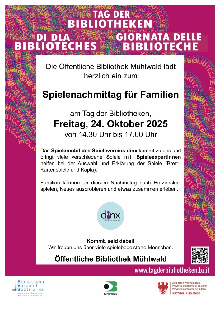 Das Spielemobil des Spielevereins dinx kommt in die Bibliothek und bringt viele verschiedene Spiele mit. Spieleexpertinnen helfen bei der Auswahl und Erklärung der Spiele (Brett-, Kartenspiele und Kapla).