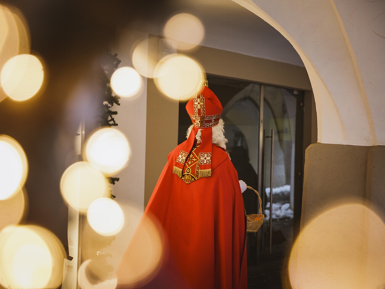 Ceremonial arrival of Saint Nicholas on Cathedral Square, accompanied by the Brixen Christmas Angels, from Altenmarktgasse along the Großer and Kleiner Graben, through the Sonnentor and through the arcades. Saint Nicholas distributes his gifts on Cathedral Square.