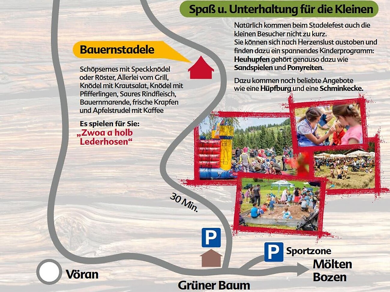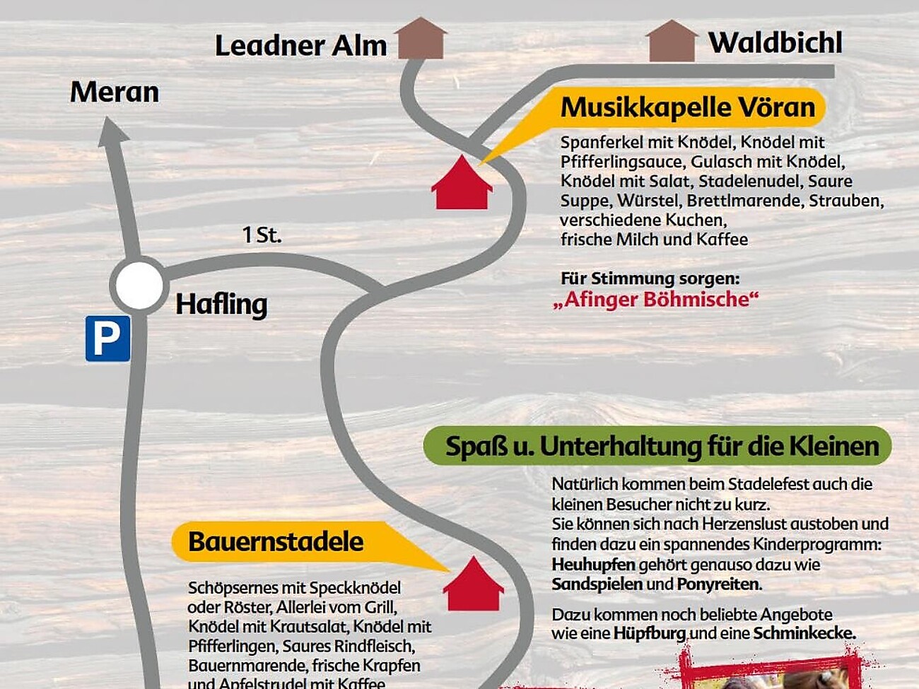 After a break due to the situation, the "Stadelen" along the scenically beautiful Pichler meadows will once again offer numerous culinary delicacies and hearty music. Entertainment for the children is also well provided for!