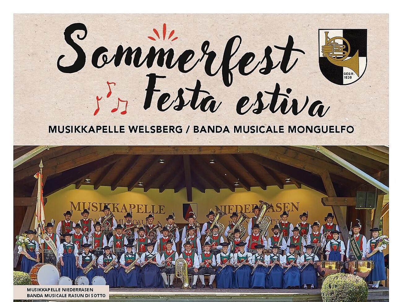 At 06:00 pm, the Monguelfo-Tesido Youth Band begins its festive parade, followed by a lively concert. At 08:30 pm., the Music village band Rasun di Sotto will provide top-notch entertainment with their performance. Delicious food and drinks will be available.