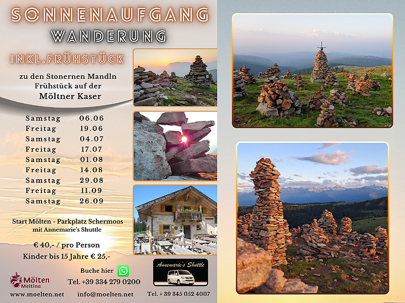 Sunrise hike to the Stoanernen Mandln and breakfast on the Möltner Kaser