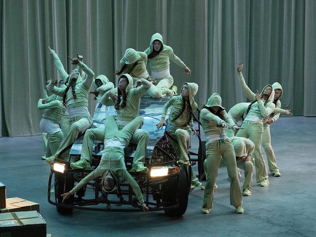 In Age of Content (LA)HORDE - the triad Marine Brutti, Johathan Debrower and Arthur Harel - attempts to question our physical and emotional relationship with the abundance of content and simultaneous realities that characterise the contemporary world. The performance is conceived as an exploration of different realities through bodies in search of new horizons. The dance unfolds as a cavalcade through a set created as a fresco of paradigms, in turn traversed and pierced by bodies that confront, clash, challenge, attack, fight, flee, embrace, desire and love each other.