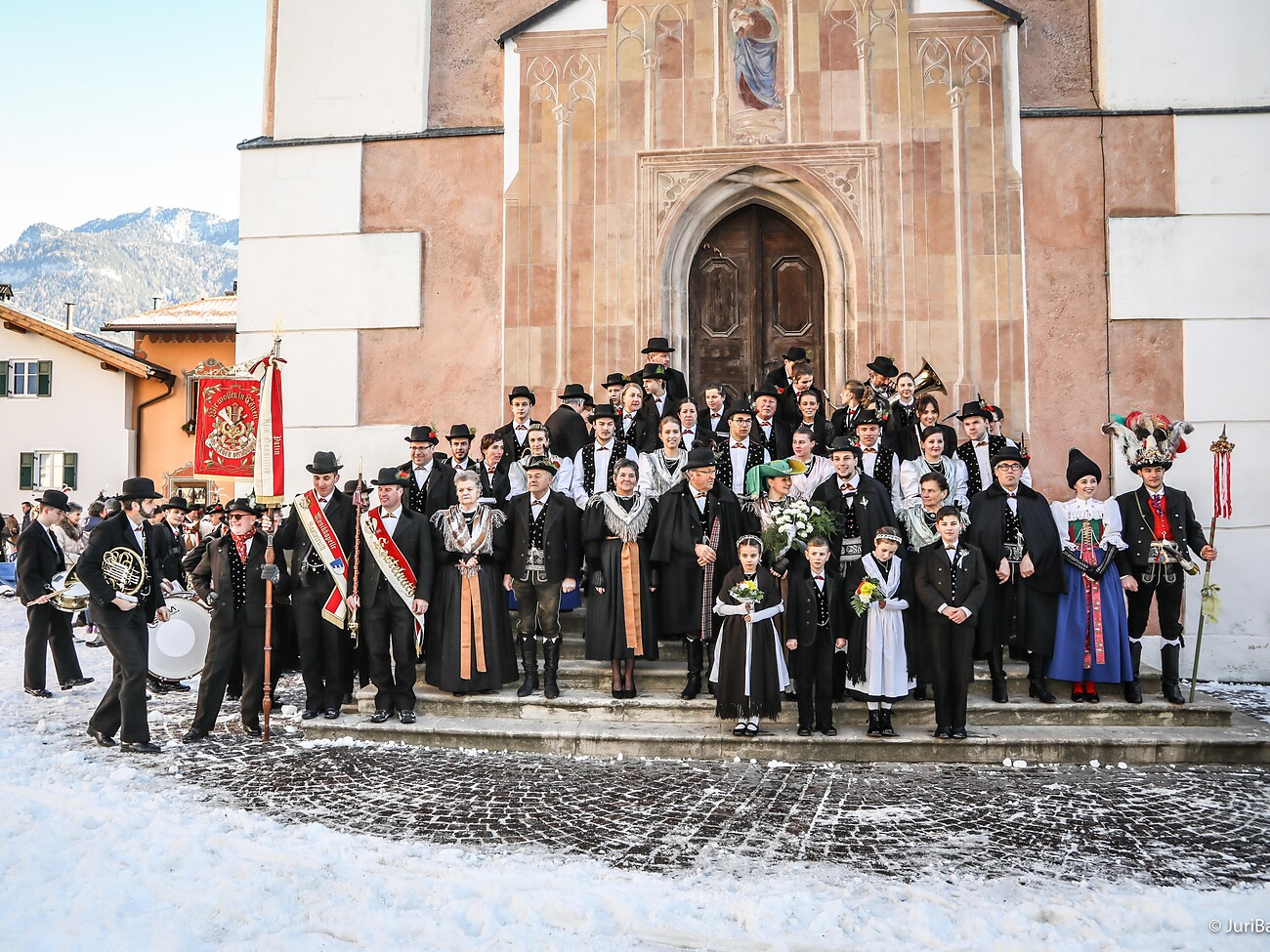 The highlight of the spectacle is the wedding procession from St. Anna (Wegmacher farm) to the center of Kastelruth. Dressed in traditional costumes, the wedding party parades into the center of Kastelruth on magnificently decorated horse-drawn sleighs, taking visitors on a journey back in time to the 19th century.