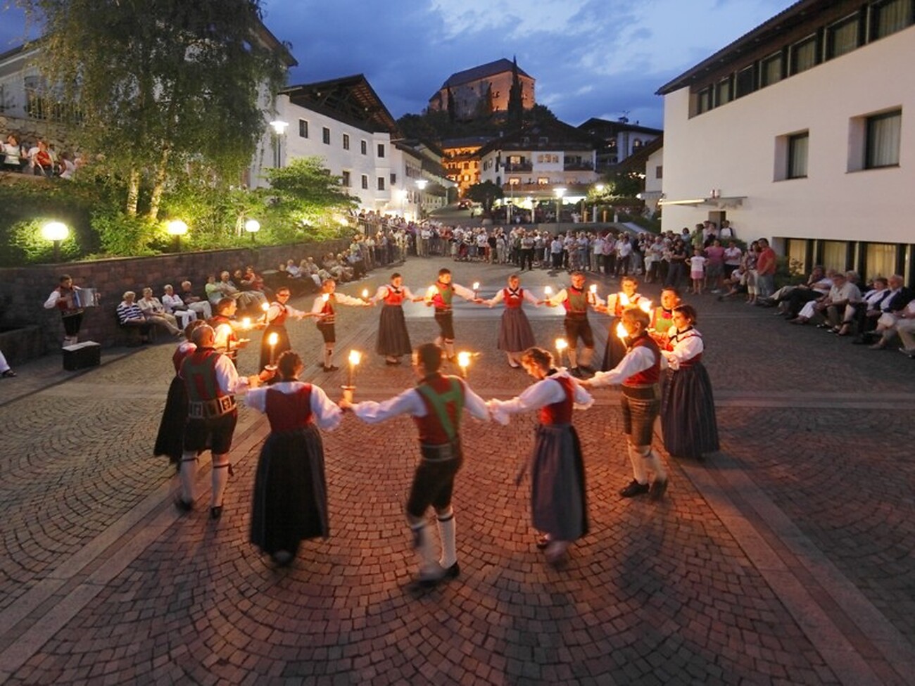 Traditional torch dance on the Raiffeisen square Schenna