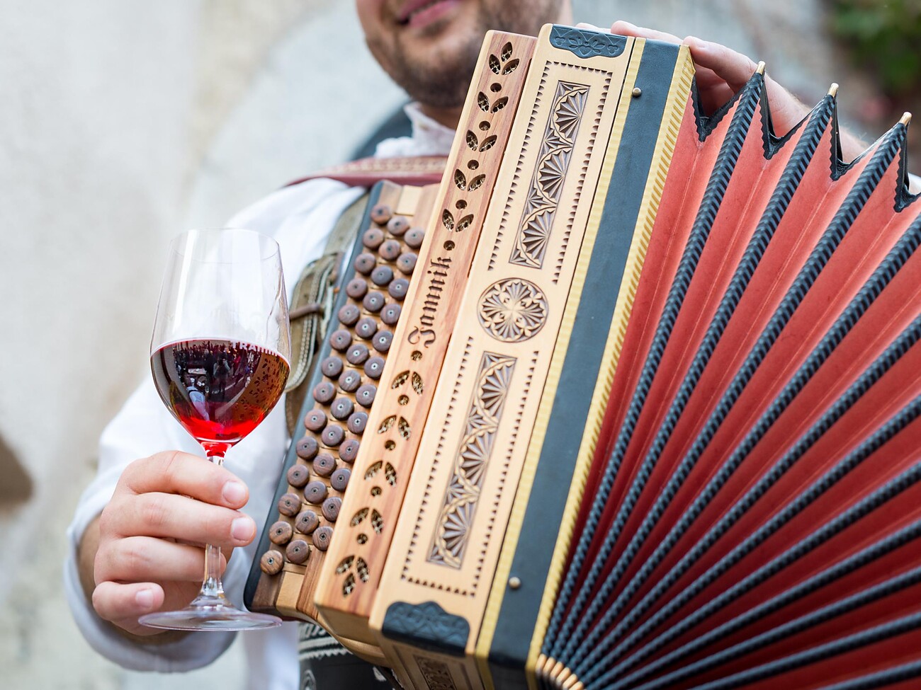 After paying a €5 deposit, you’ll receive a beautiful glass bearing the Tramin coat of arms. With it, you can sample the finest wines from Tramin’s wineries at the various stands. The prices for individual wines are displayed at each stand.