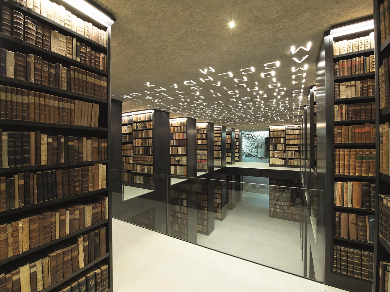 Il vasto e prezioso patrimonio di libri dall'abbazia Marienberg è ospitato in una moderna biblioteca sotterranea. Oltre 100.000 opere a stampa vi hanno trovato una nuova collocazione.