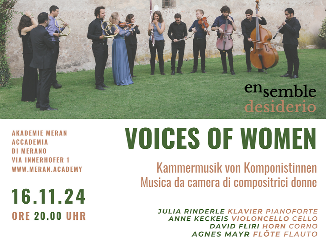 Mit Werken von Komponistinnen mit Julia Rinderle - Klavier, Anne Keckeis - Violoncello, David Fliri - Horn, Agnes Mayr - Flöte.