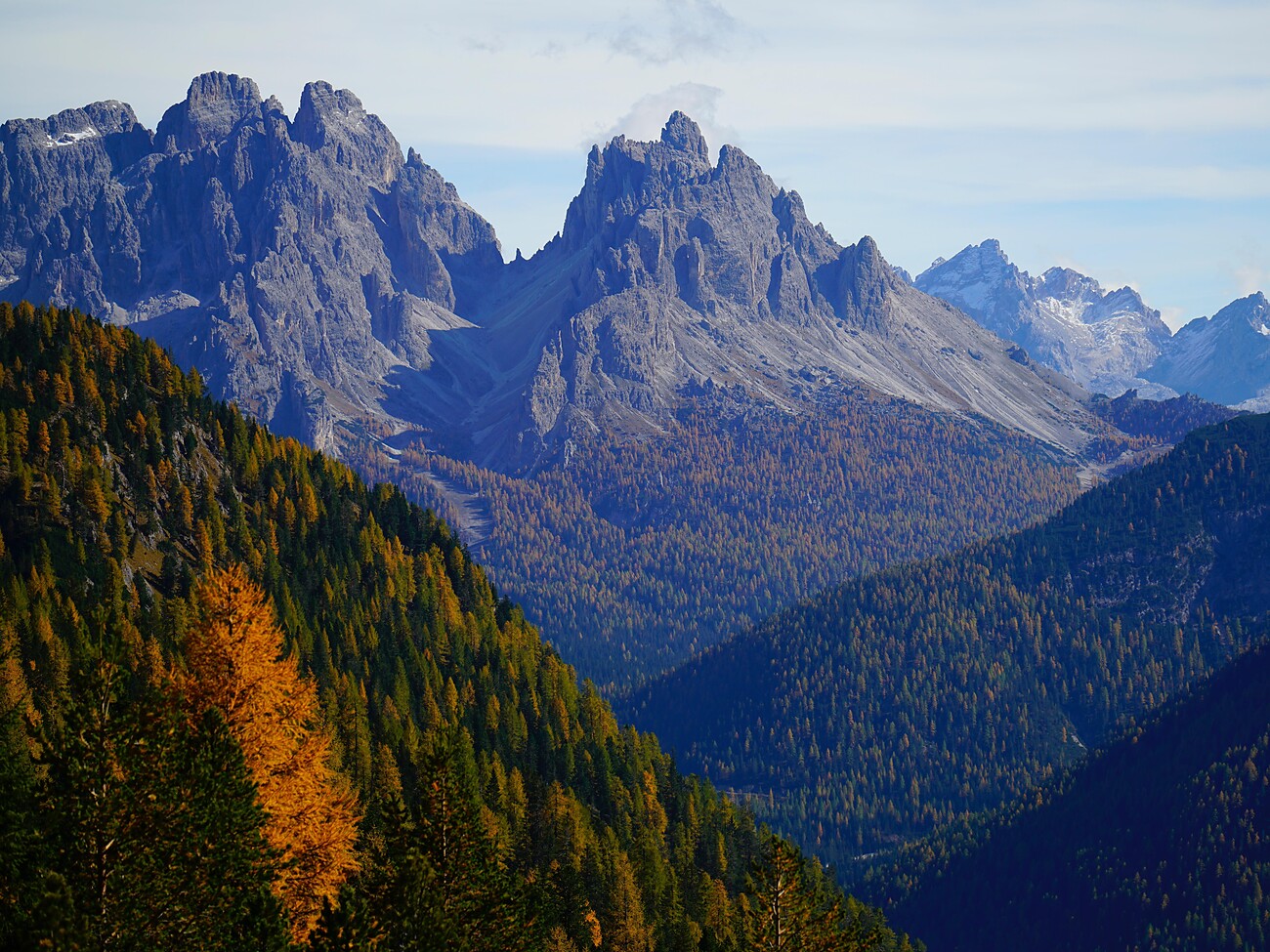 The hike to the alp can also be shortened on trail no. 30 through the forest, we choose the more leisurely variant via the well-maintained forest path, which initially winds somewhat steeper, uphill. The view of the mountains of Pfunders/Fundres with Seefeldspitze and Gitschberg on one side and the Eidechsspitze on the other side is impressive.