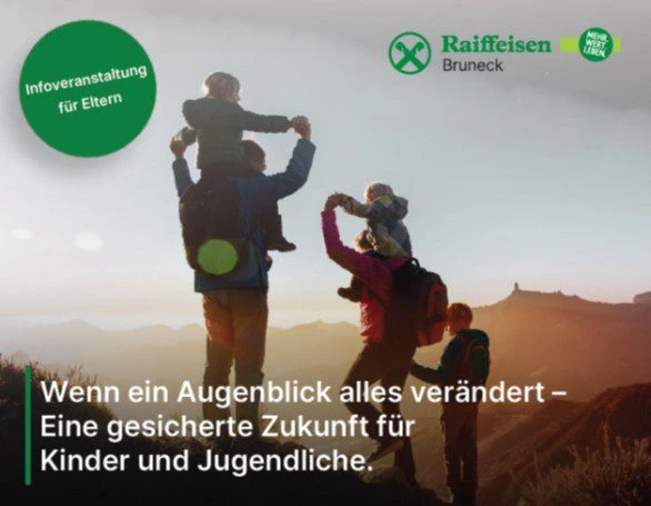 Anmeldung erforderlich unter www.raiffeisen-bruneck.com. Die Plätze sind begrenzt!