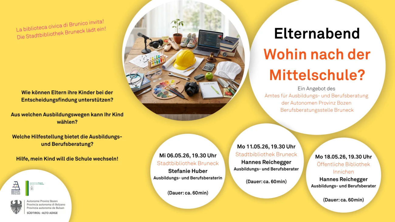 Eine Zusammenarbeit der Öffentlichen Bibliotheken von Bruneck und Innichen und dem Amt für Ausbildungs- und Berufsberatung der Autonomen Provinz Bozen