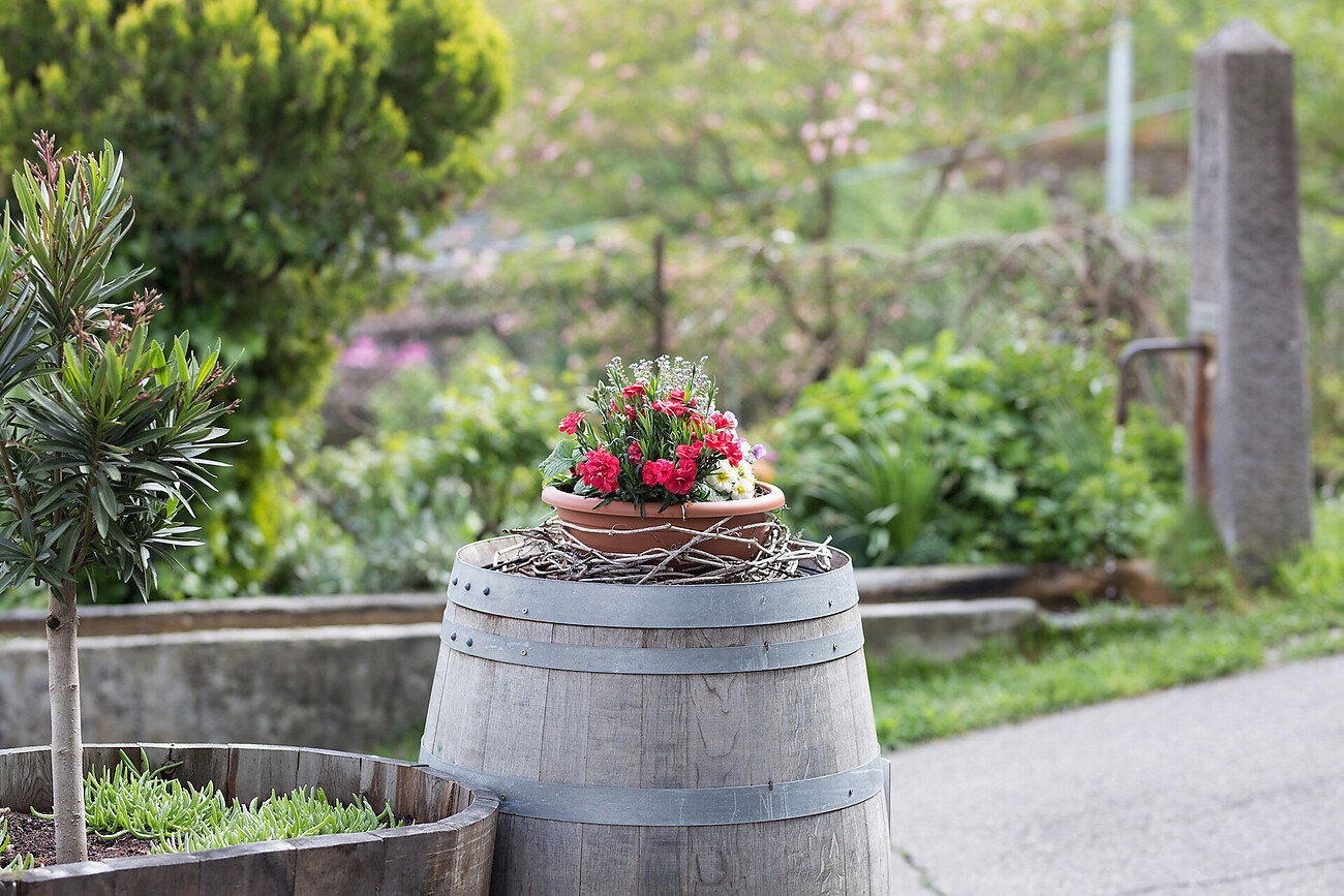 You will spend your holidays in our roomy apartments located at a farm house in the Merano countryside, enjoying our typical South Tyrolean quality wines. Our historic farm house, built in 1285, is located in a central but quiet area, and all our holiday apartments have a balcony and wonderful views or a terrace. During your stay with us, you can completely switch off from your daily routine: you can relax at our swimming pool, hike in the mountains, cycle, ski, and your children can play in our grounds. On request, you will also have the possibility to gain insight in typical activities of a wine and fruit farm, and you can participate at wine tasting evenings in our picturesque stone vault. The Mitterer/Eccli family looks forward to your visit in South Tyrol!