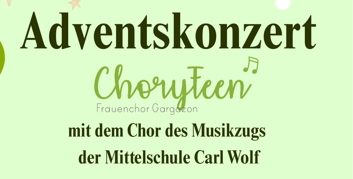 Zusammen mit dem mit dem Chor des Musikzugs der Mittelschule Carl Wolf lädt der Frauenchor ChoryFeen aus Gargazon zu einem Adventskonzert der besonderen Art ein.
