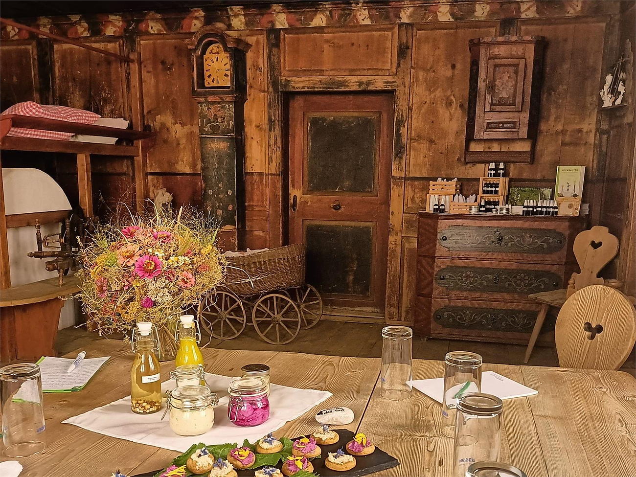 Durante un breve tour del museo, i visitatori possono conoscere le stanze dei nostri antenati, dove si praticava anche la conoscenza delle erbe. I salotti, le camere e le officine, arredati con cura, riflettono fedelmente la vita dei nostri antenati.