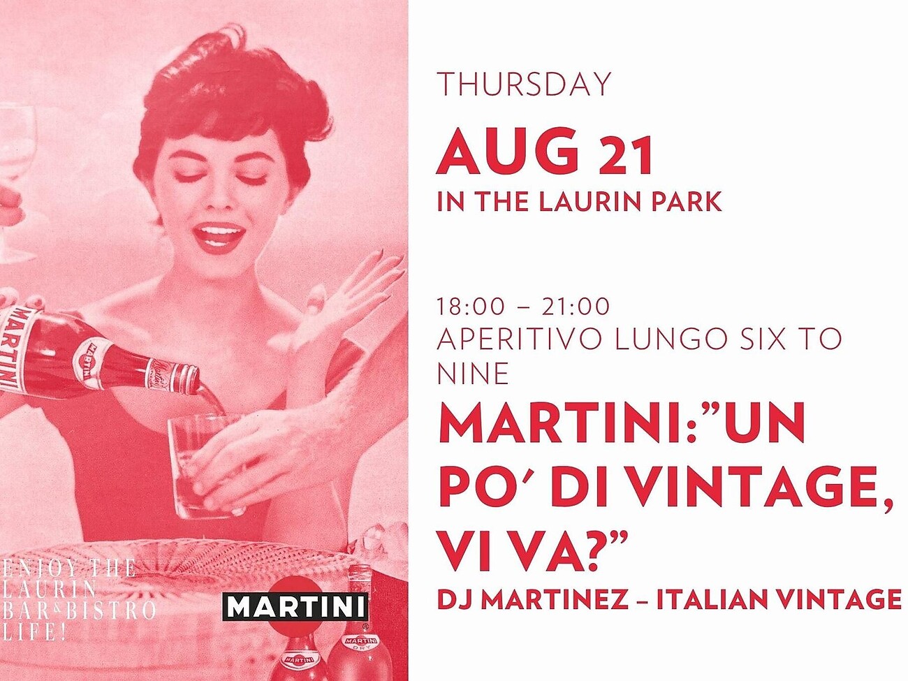 GIOVEDÌ 21 AGOSTO – APERITIVO LUNGO DALLE 18 ALLE 21 – MARTINI: “UN PO’ DI VINTAGE, VI VA?”