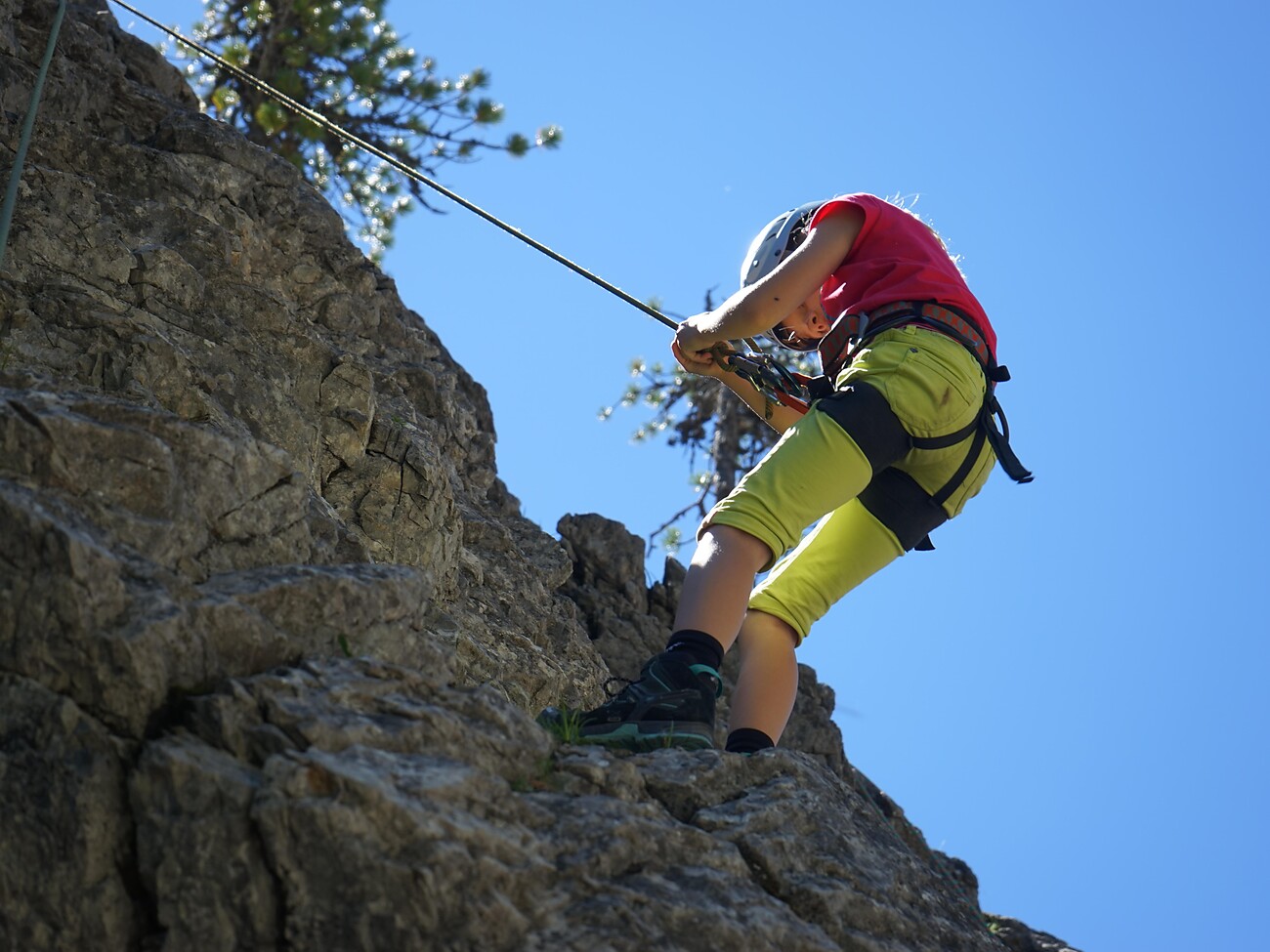 Im compagnia delle guide della Scuola d'Alpinismo Ortles i nostri piccoli ospiti possono scalare pareti mozzafiato in tutta sicurzza.