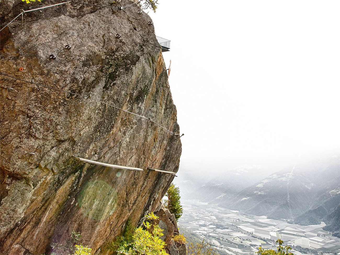 La via ferrata vicino alla stazione a monte della funivia Unterstell offre 4 vie ferrate con diversi livelli di difficoltà sulla roccia sotto la piattaforma panoramica. Una guida professionista vi accompagna sul "Knott" e vi dà importanti consigli per un'arrampicata sicura. L'arrampicata sulla via ferrata "Knott" é per adulti e famiglie con bambini di almeno 7 anni (statura minima 130cm)