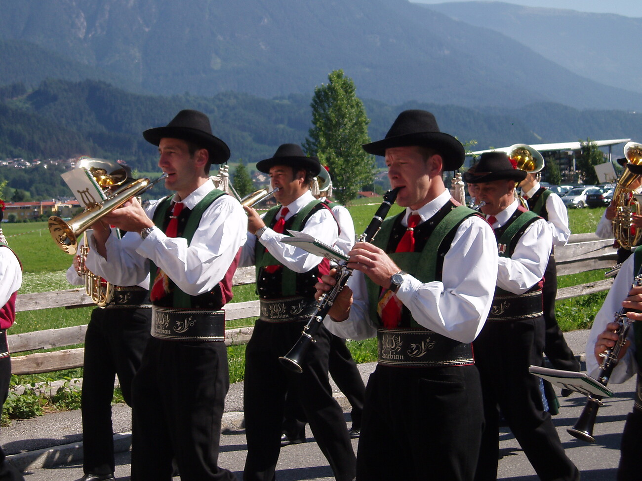 Auguri di Buon Anno 2023 della banda musicale a Barbiano suonando e camminando attraverso il paese.