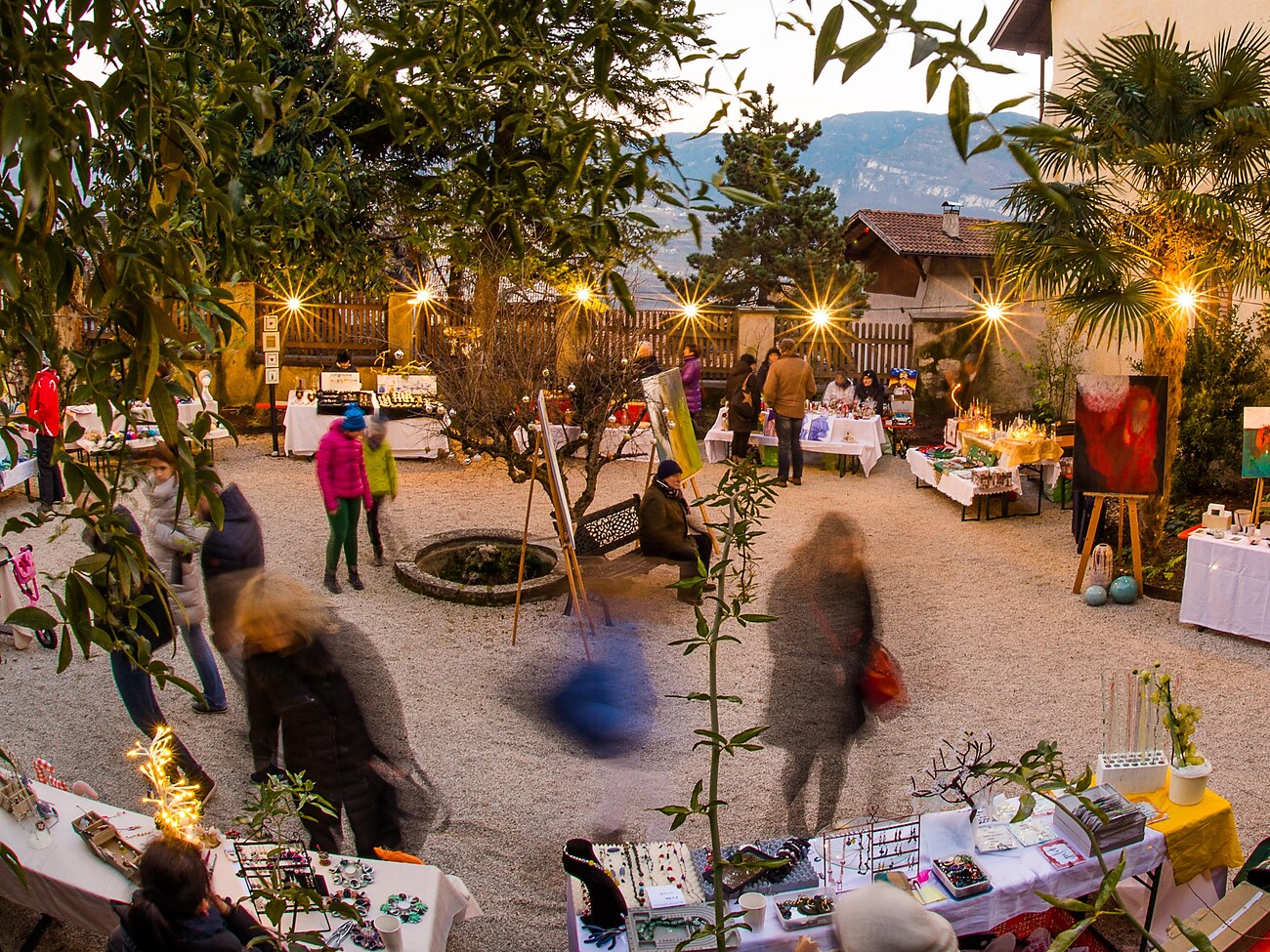 Oltre alla vasta gamma di idee regalo fatte in casa, l'atmosfera unica dei vicoli stretti, dei cortili pittoreschi e delle antiche case attira ogni anno famiglie ed amanti dei mercatini di Natale nel quartiere più antico di Termeno. Diversi proprietari aprono le porte dei loro cortili privati il giorno dell'Immacolata dalle ore 10.00 alle 17.00 e vi invitano a vivere un'esperienza prenatalizia insieme agli espositori e allo sviluppo comunale di Termeno. Numerose bancarelle presentano prodotti agricoli, artigianato, biscotti natalizi, gioielli, oggetti in ceramica, regali sostenibili e molto altro in un'atmosfera unica.