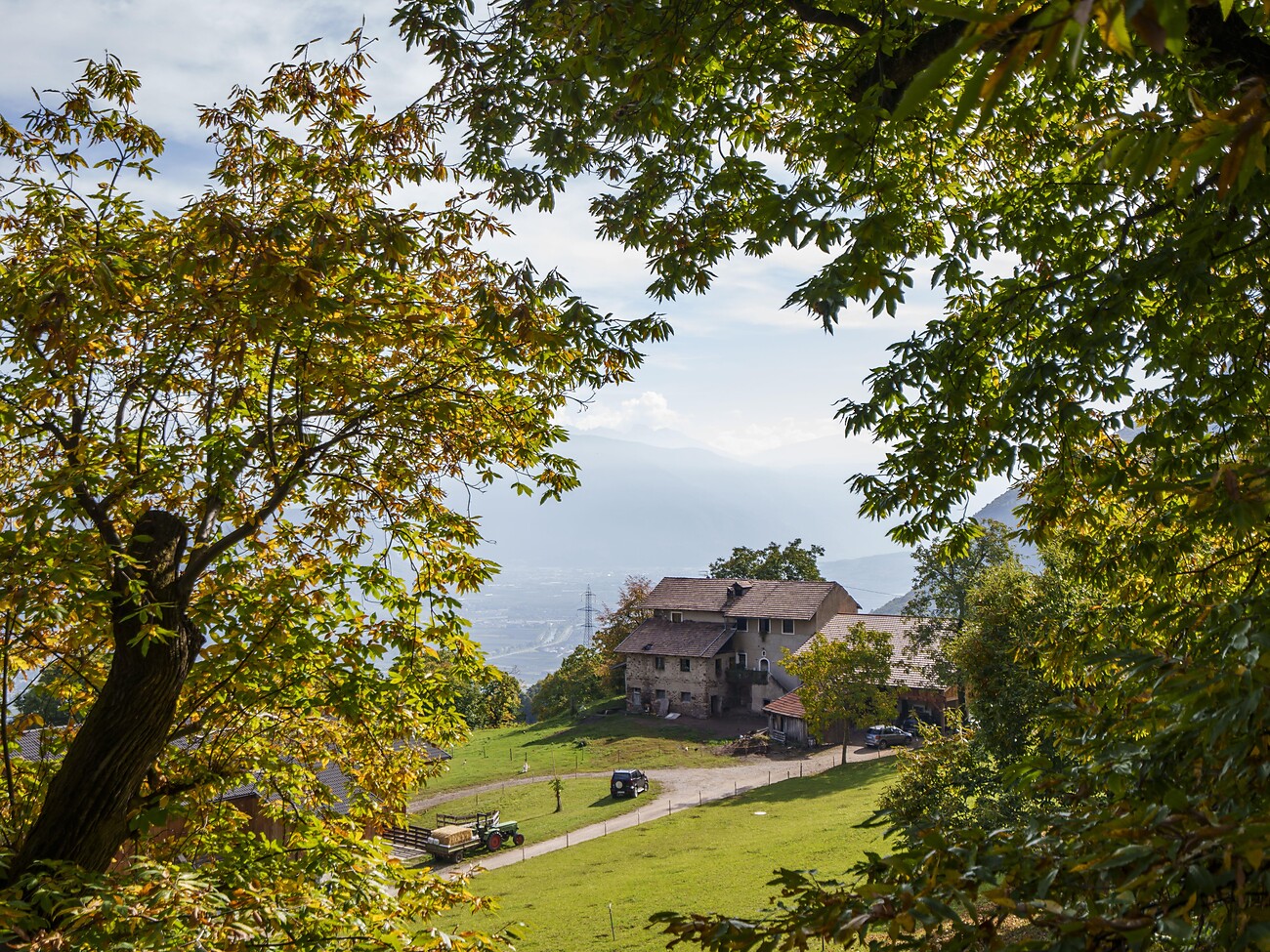 Escursione con guida nei castagneti del maso Mair am Turm a Grissiano. Davanti al maso storico vengono arrostite e assaggiate delle castagne di Tesimo. Di seguito camminando si ritorna alla locanda Schmiedlhof, dove viene servita in tavola e assaporita la merenda tirolese.