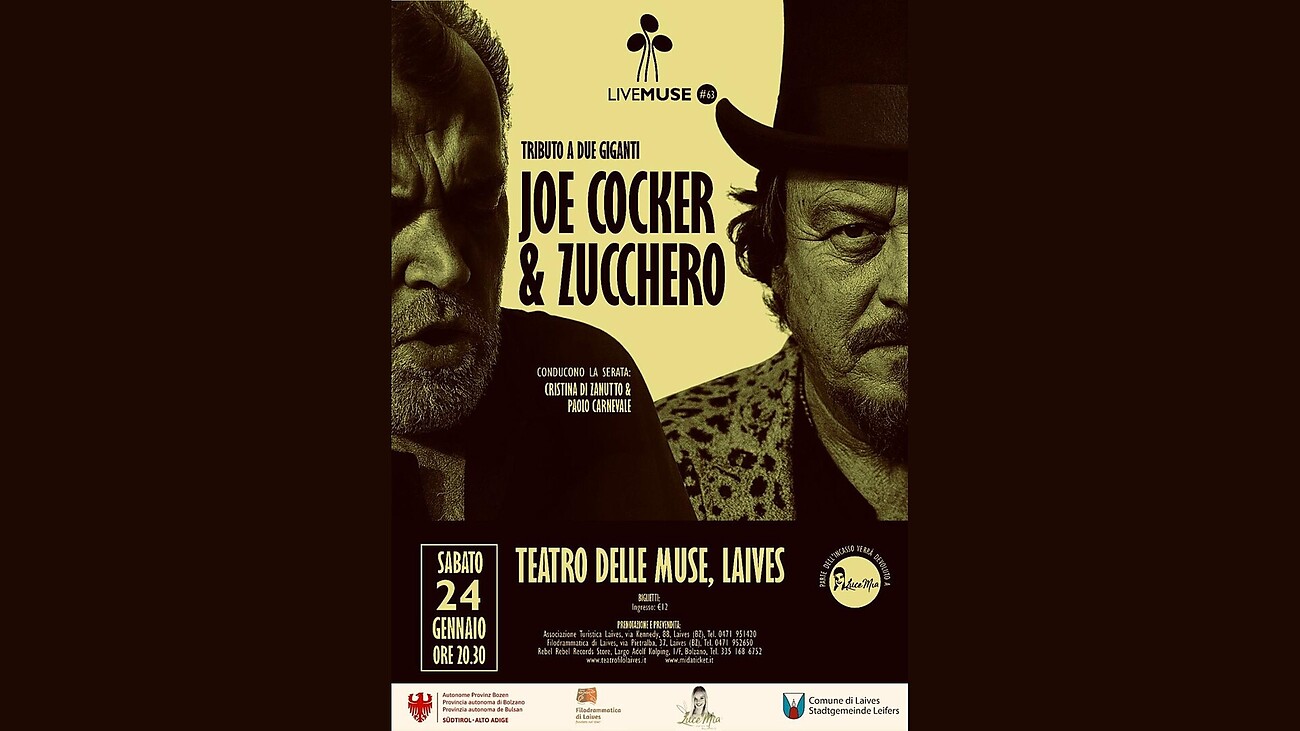 Live Muse vuole con questo concerto celebrare la musica di due grandi della musica: Zucchero e Cocker! Due voci, due stili, due anime che hanno lasciato un segno indelebile nella storia della musica italiana e internazionale.