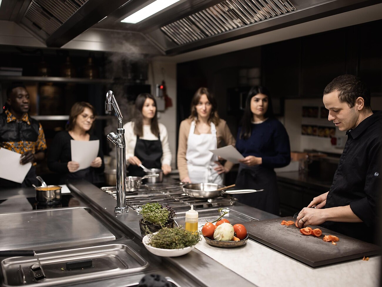 Passo dopo passo realizziamo piatti che portano gioia in tavola e riescono senza fatica. Poi gustate tutto in un’atmosfera accogliente – con un bicchiere di vino per i grandi e una bevanda analcolica per i piccoli.