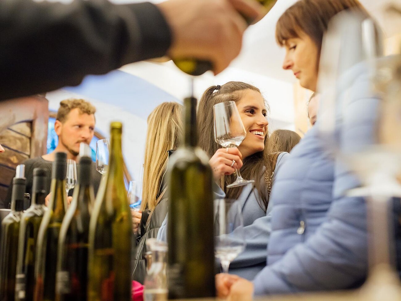 Un bus navetta vi porterà da una cantina all'altra. Lì avete l'opportunità di assaggiare i vini aromatici dei nostri viticoltori e vi permette di dare un’occhiata alle cantine.