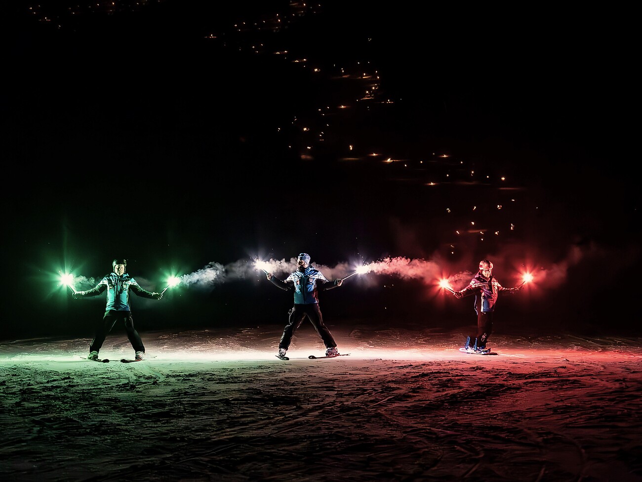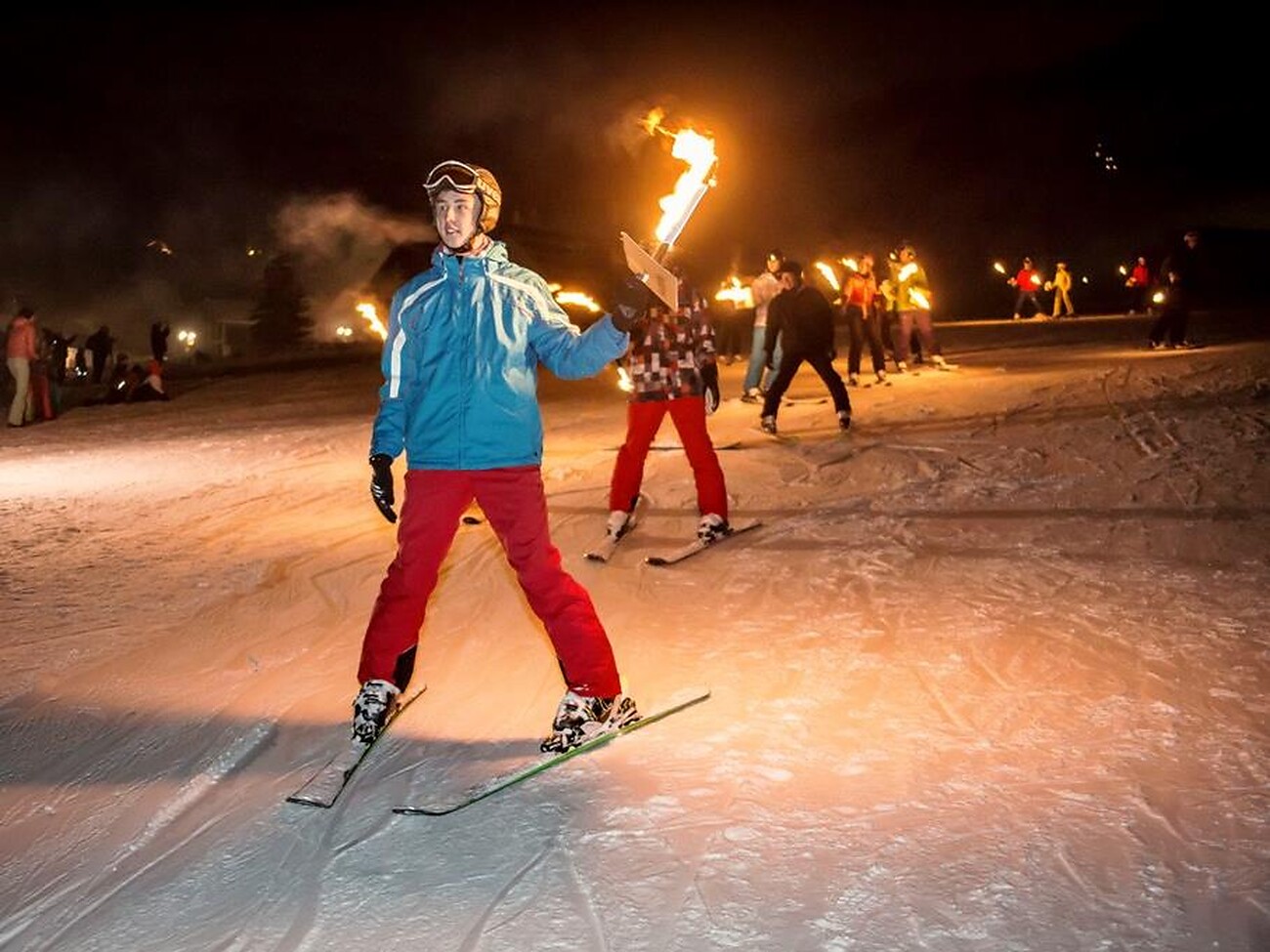 I maestri assieme agli ospiti formano con le loro fiaccole uno spettacolare serpentone luminoso per augurare a tutti un buon Anno Nuovo.