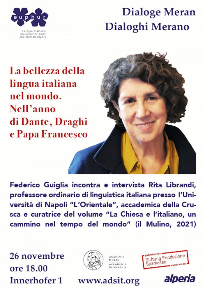 Organizzatore: Accademia di Studi italo-tedeschi di MeranoFederico Guiglia incontra e intervista Rita Librandi,