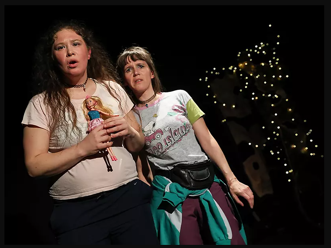Barbara Maria Angermaier und Marika Rainer singen, rappen und verwandeln Puppen in grantige Dorfbewohner:innen. Die Musik reicht von Volkslied bis Oper – schräg, witzig, live.