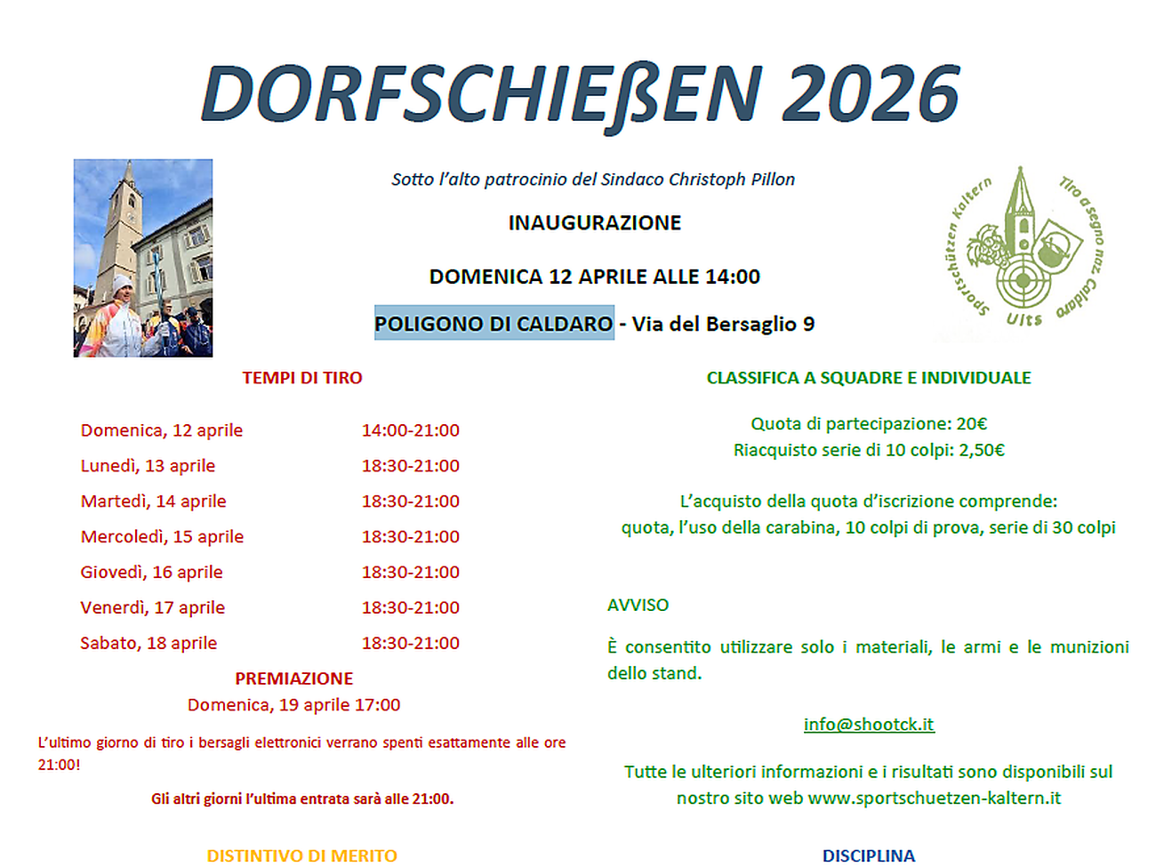 Gli Sportschützen Kaltern invitano principianti ed esperti alla gara paesana di tiro 2026, un evento all’insegna della convivialità.