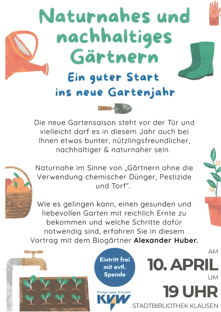 Die Inhalte des Vortrages sind: Was benötigt meine Gartenerde, damit sie gesund und fruchtbar wird und wie bearbeite ich meinen Boden schonend.