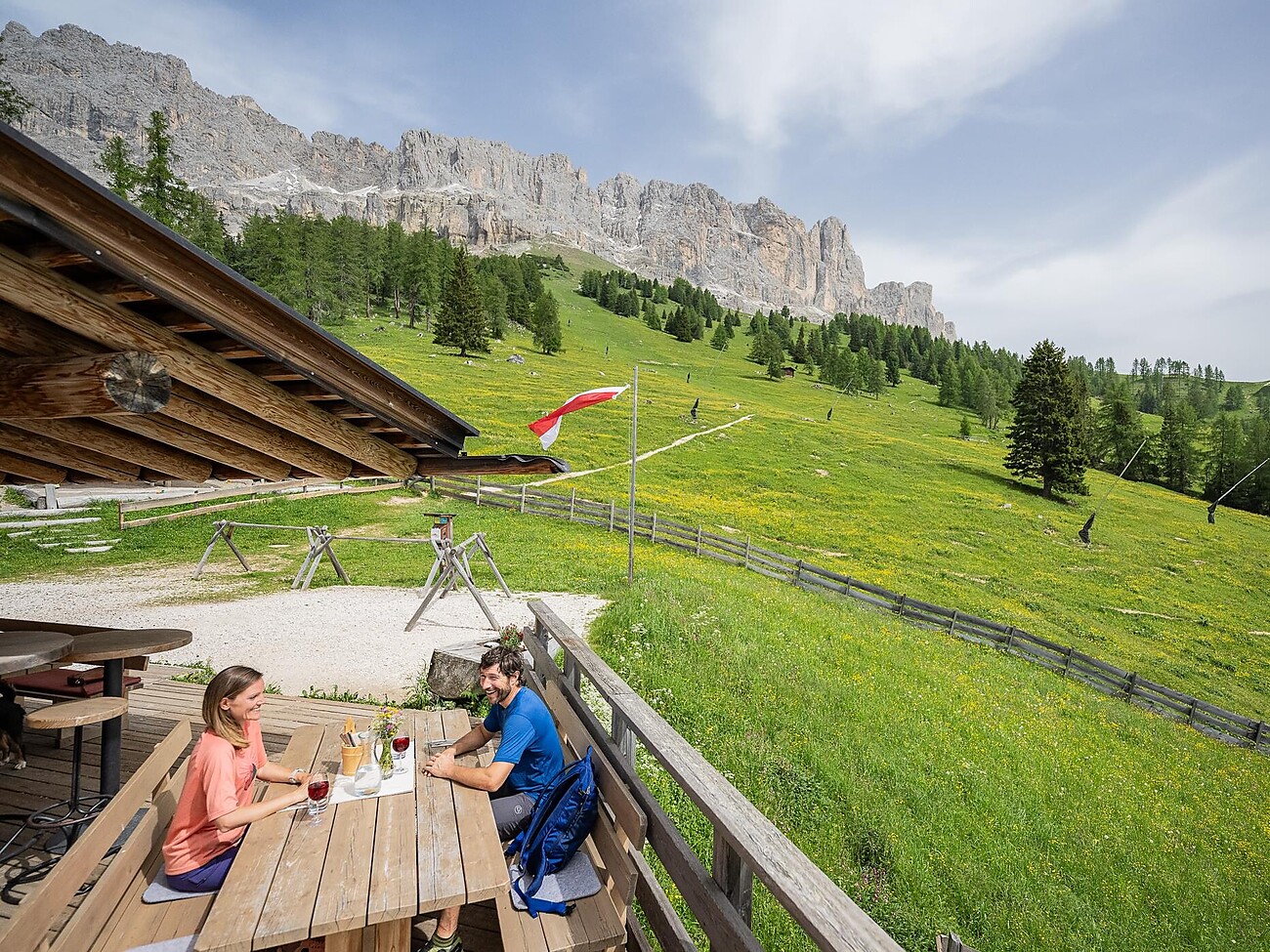 Salita da Nova Levante con la cabinovia fino alla malga Frommeralm. Da lì, camminiamo fino alla baita Messnerjoch. La nostra escursione panoramica nell'area del Catinaccio continua fino alla baita Haniger Schwaige, dove le Torri del Vajolet sono a portata di mano. Attraverso il sentiero Valle Nigra si ritorna a Nova Levante al punto di partenza.