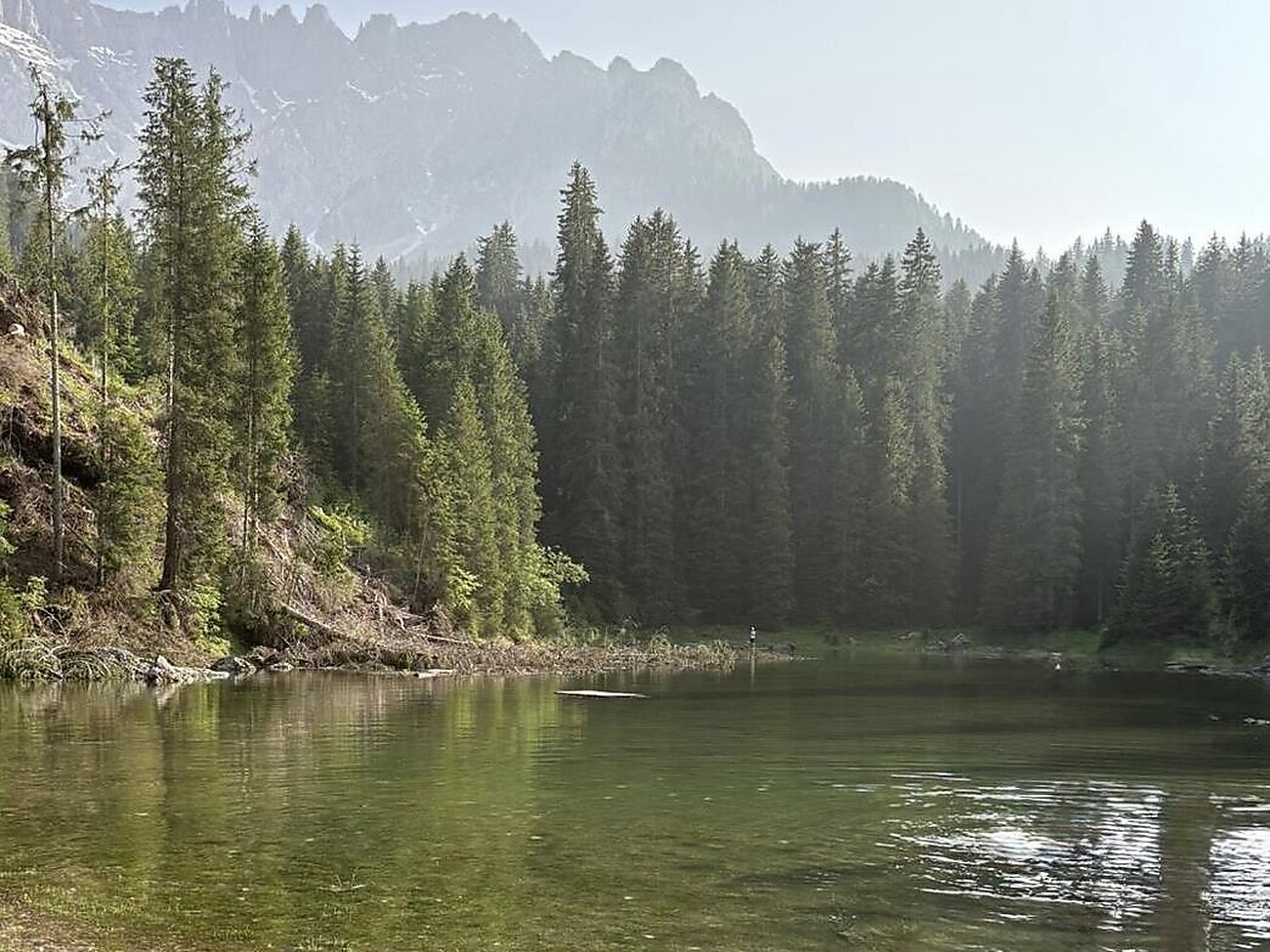 Iniziamo con l’autobus di linea 186 e scendiamo all’incrocio della Strada del Niger, dove ha inizio la nostra escursione. Da qui seguiamo il sentiero attraverso gli ampi prati del Latemar, caratterizzati da pascoli aperti e splendide vedute. Raggiungiamo quindi il famoso Labirinto del Latemar, dove il percorso si snoda tra enormi blocchi rocciosi, residui di una frana preistorica. Dopo il labirinto proseguiamo verso il Mitterleger e arriviamo infine al Lago di Mezzo (Mittersee), un laghetto stagionale nel bosco che contiene acqua a seconda del periodo dell’anno. Da qui scendiamo al Grand Hotel Carezza e rientriamo a Tires con l’autobus di linea.