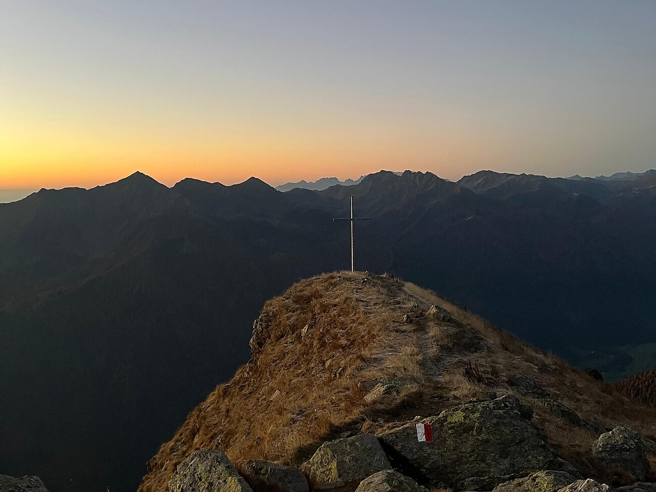 Da “Gigglhirn” a Santa Valburga in Val d’Ultimo iniziamo l’escursione seguendo un sentiero forestale in salita, lungo un torrente fino a raggiungere la malga “Marschnellalm”, l'alpeggio più alto della valle. Superiamo poi qualche ripido prato di montagna e lungo un breve e facile tratto di cresta raggiungiamo il monte “Peilstein”, da dove ammiriamo l’impressionante vista panoramica sulle montagne della Val d’Ultimo.