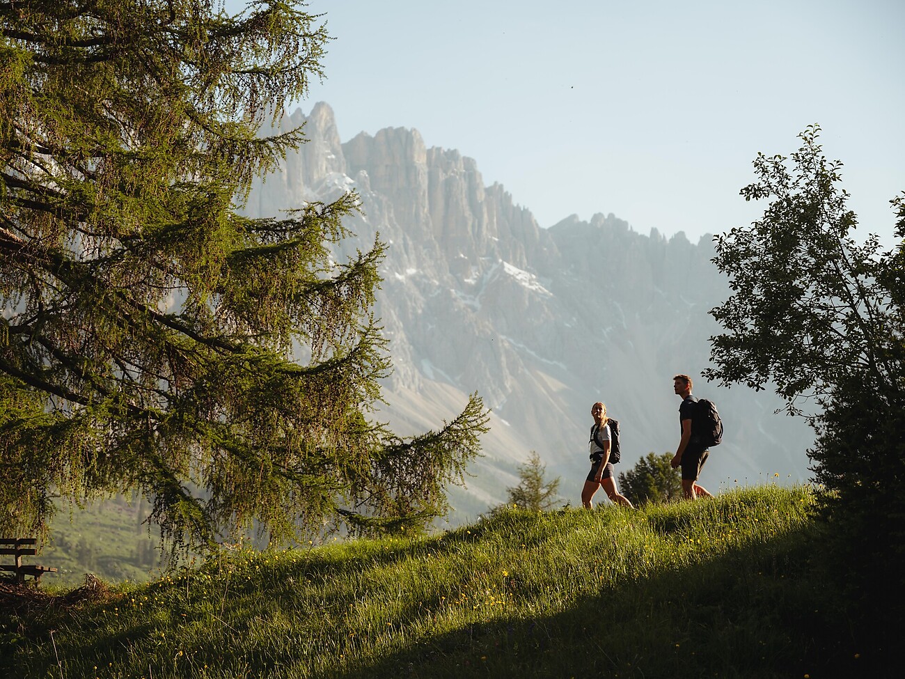 Iniziamo l’escursione dalla Piazza della Fontana a Tires e scendiamo inizialmente verso il fondovalle. Sul versante opposto risaliamo in direzione di Wolfsgrube. Seguendo sentieri vari e suggestivi raggiungiamo il biotopo Totmoos, un ambiente naturale di particolare valore. Proseguiamo poi fino al Jocherhof, dove ci fermiamo per una sosta. La discesa ci conduce a Nova Levante, da dove rientriamo a San Cipriano con gli impianti di risalita.