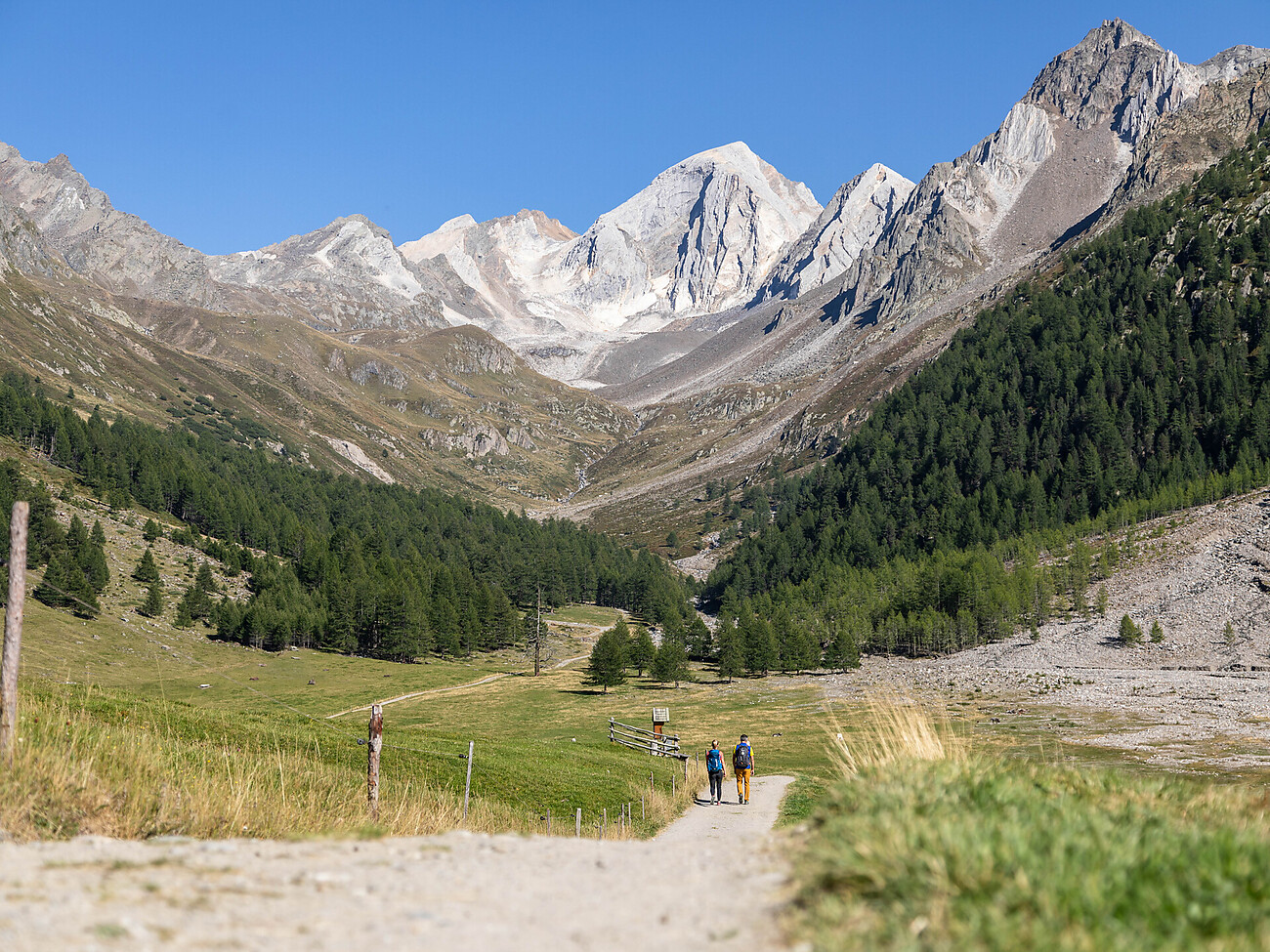 Dal parcheggio Vorderkaser percorriamo insieme un piacevole sentiero passando per Mitterkaser e Rableid fino a raggiungere la Malga Eishof. Qui godiamo di una vista unica sulle cime del parco naturale. Dopo una pausa, torniamo lungo lo stesso sentiero fino al parcheggio.